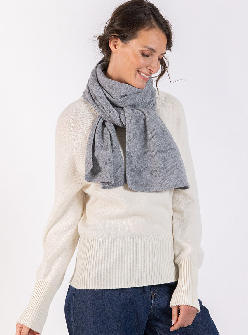 Cette écharpe en cachemire 100 %, déclinée en Gris Élégant, est un accessoire raffiné qui traverse les saisons sans se démoder. Grâce à ses dimensi...