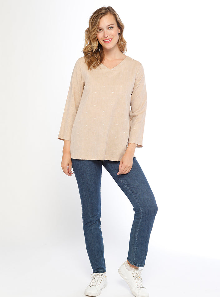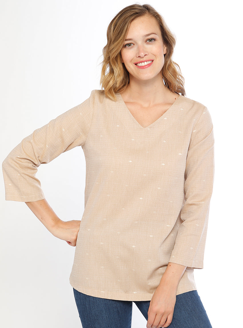 Polyvalente et agréable à porter, cette tunique beige se marie facilement avec un jean, un pantalon fluide ou un legging pour un look casual chic. Un essentiel féminin à redécouvrir saison après saison.