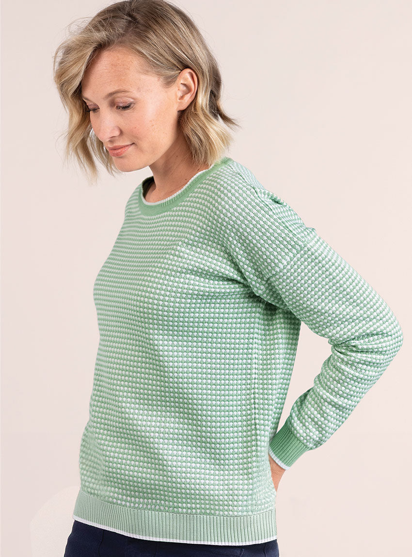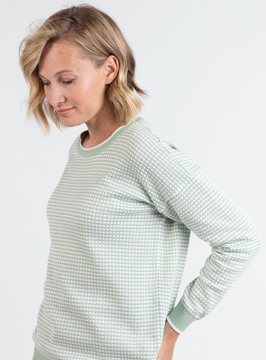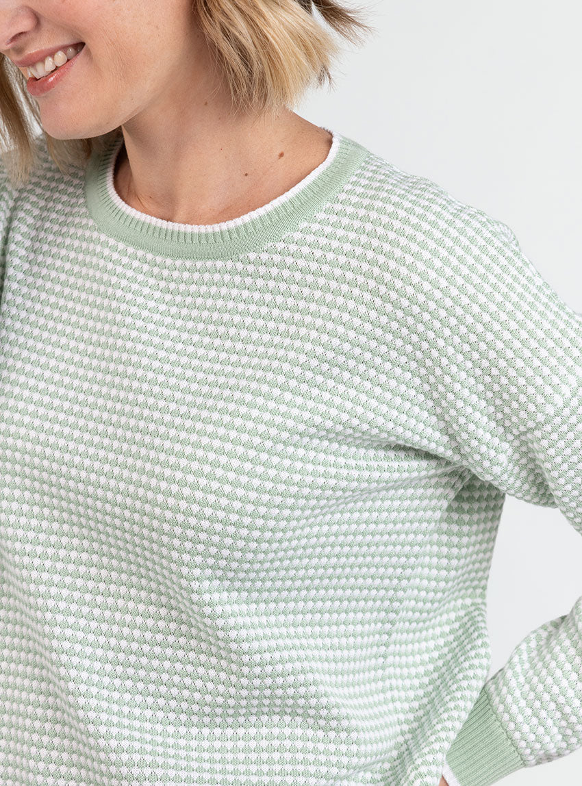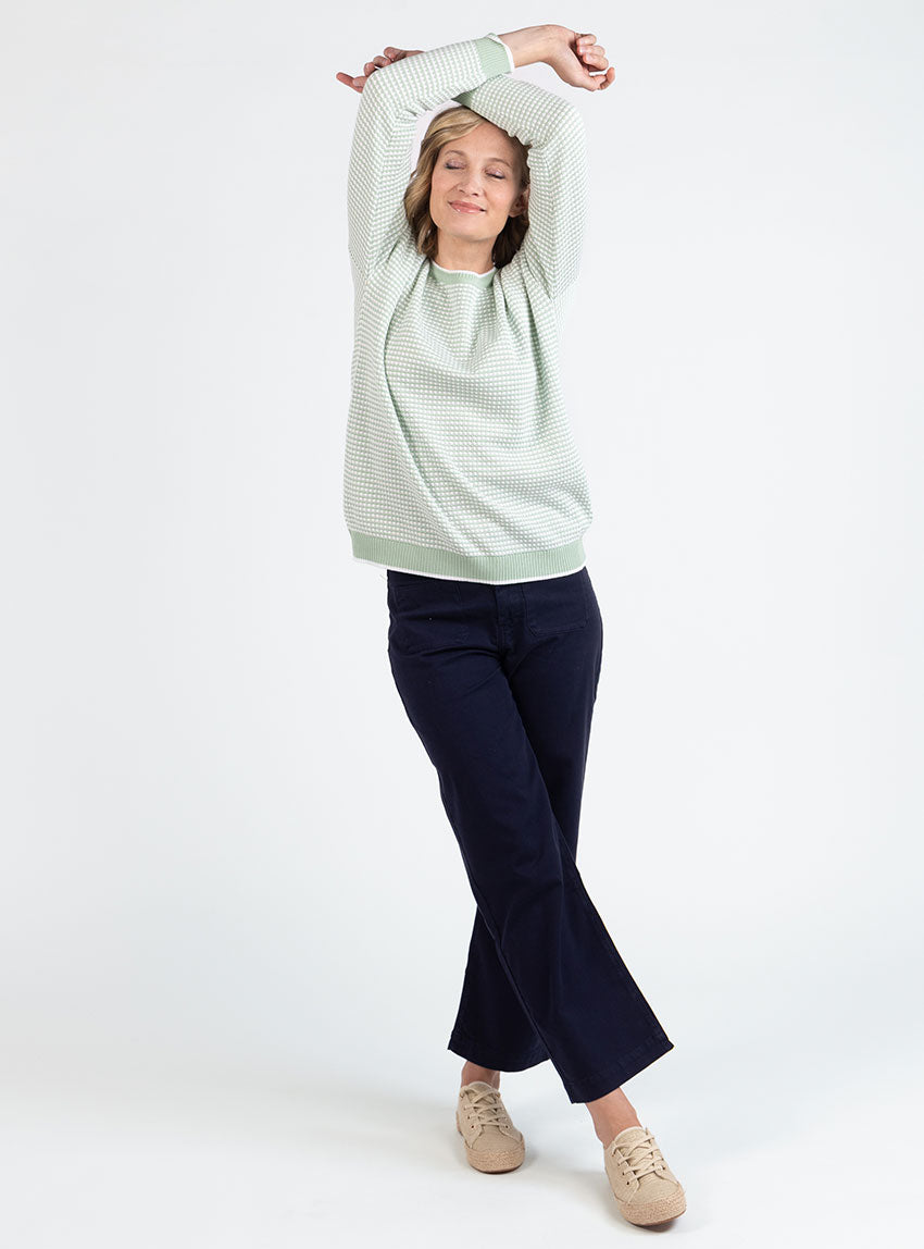 Pull femme bicolore en coton vert amande