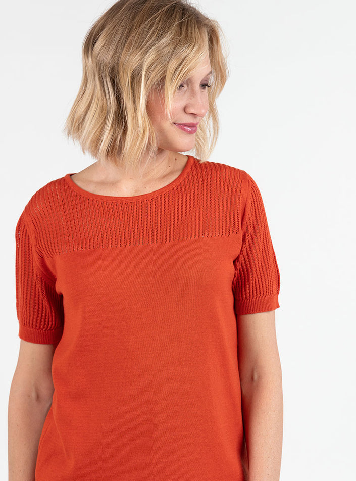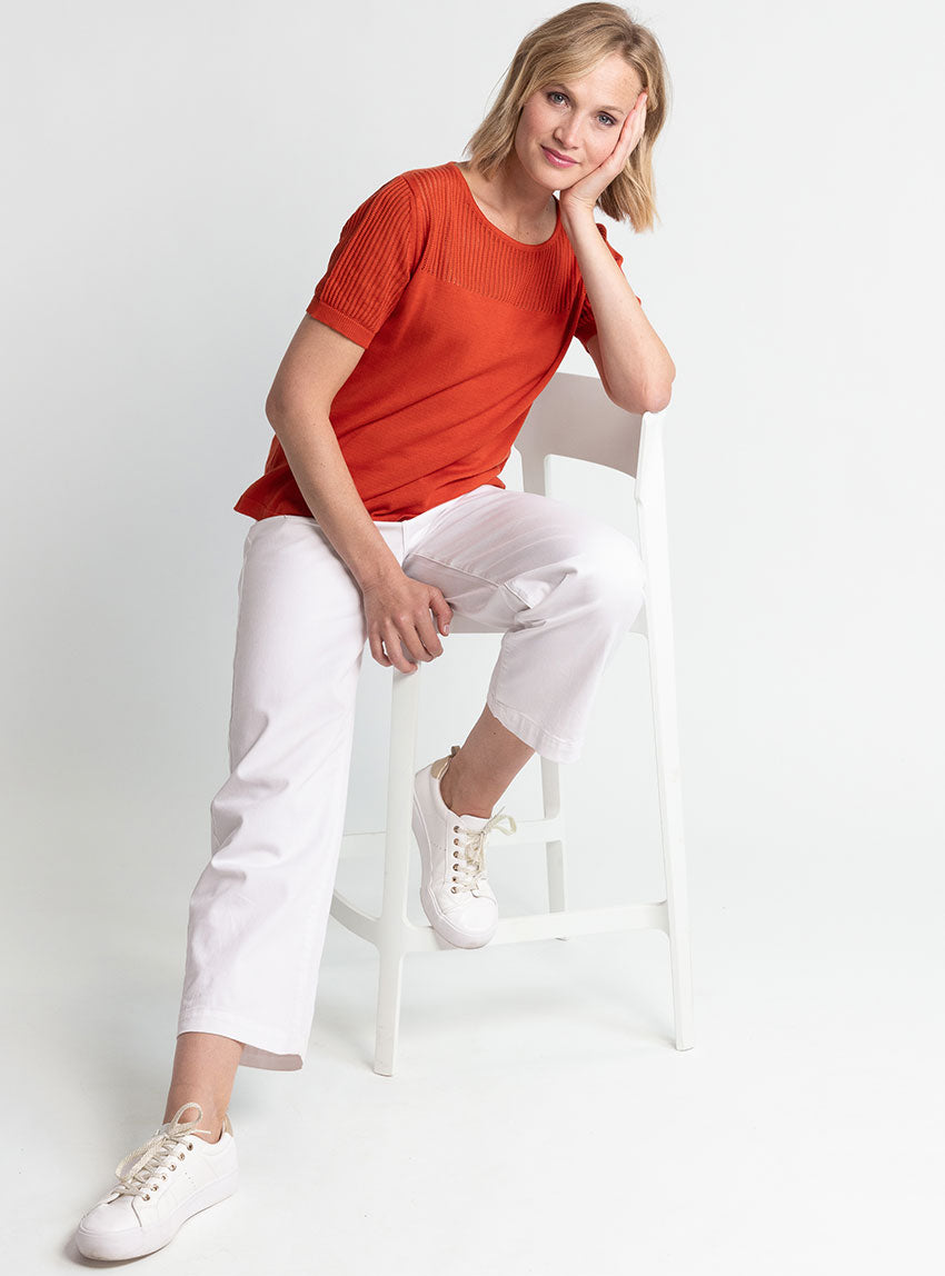 Repassage à température douce, avec de la vapeur. Faire glisser doucement le fer.
