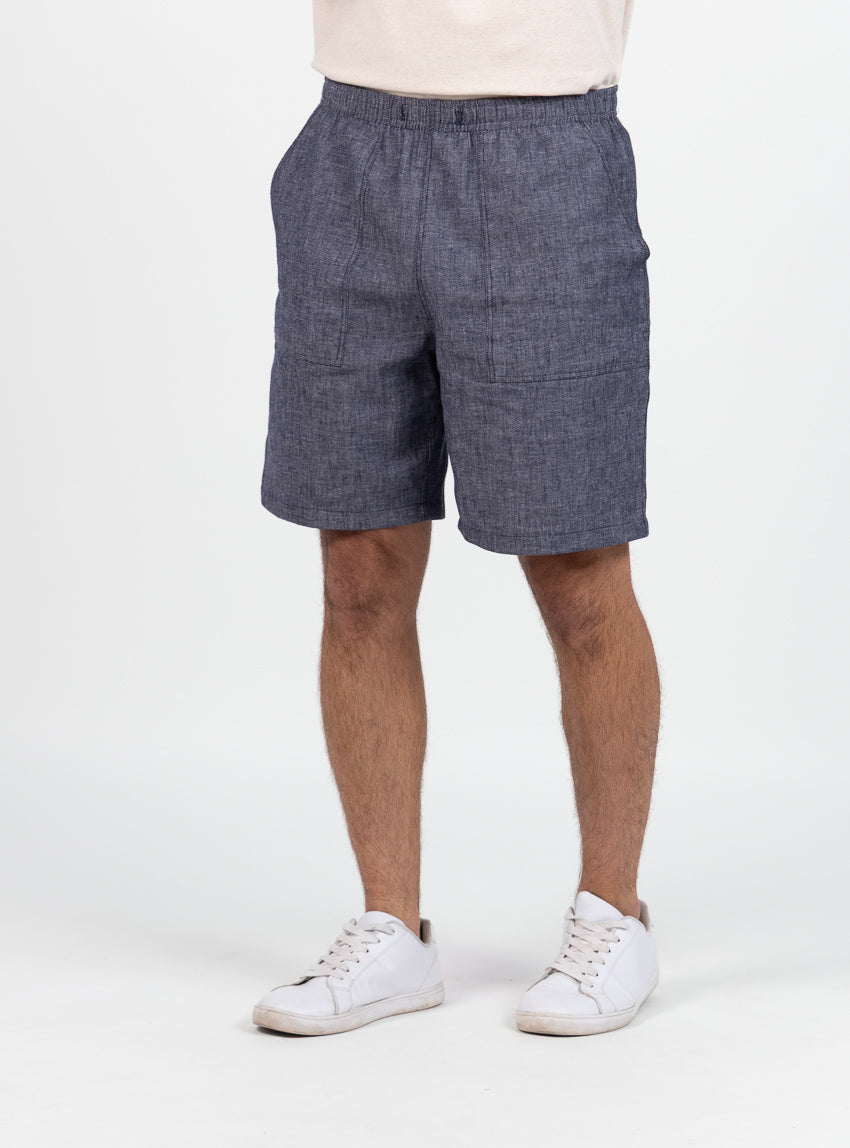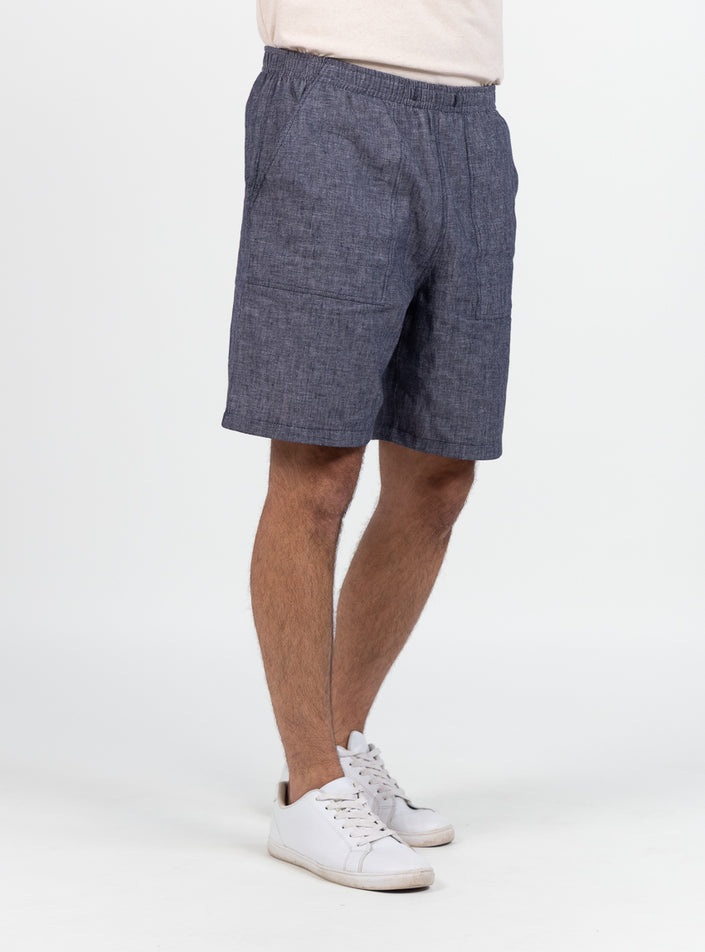 Bermuda homme en lin et coton bleu jean