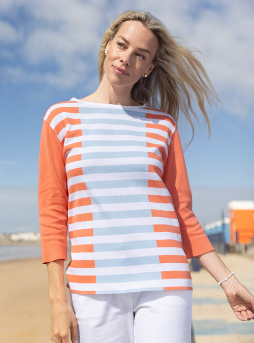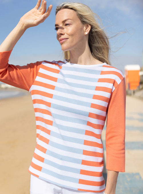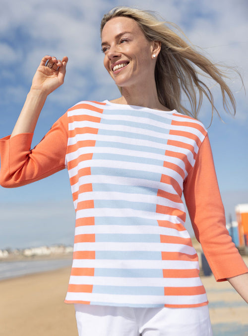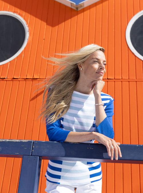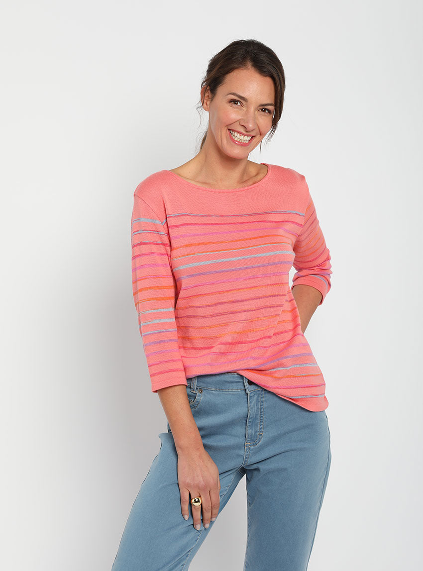 Cette marinière femme rose revisite un classique avec une coupe confortable, une encolure ronde et des manches 3/4 féminines. Facile à porter du ma...