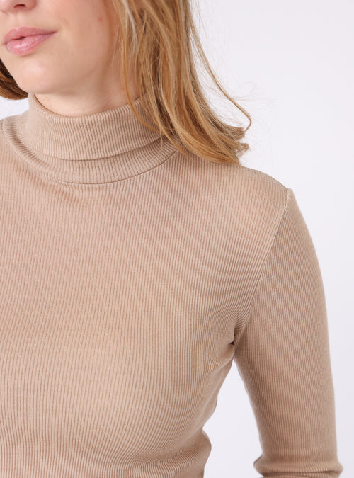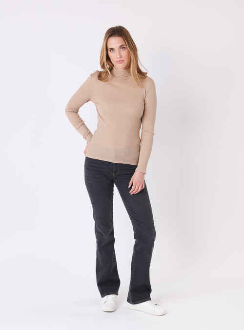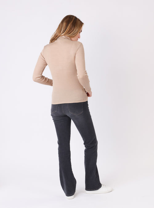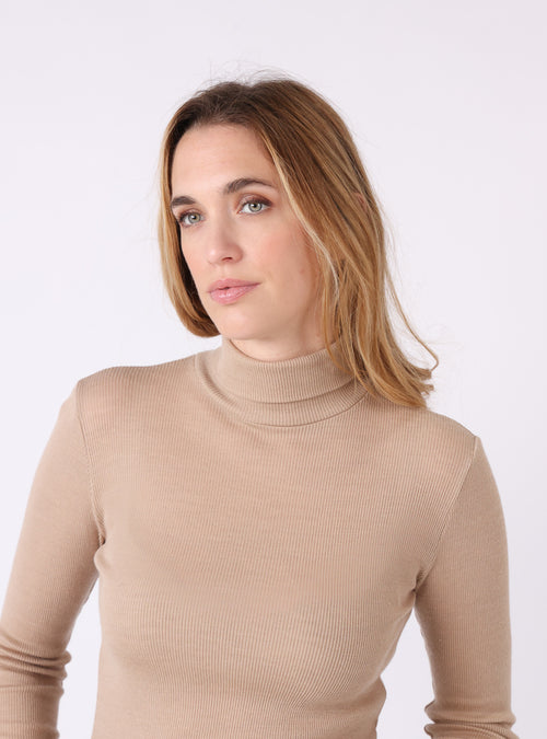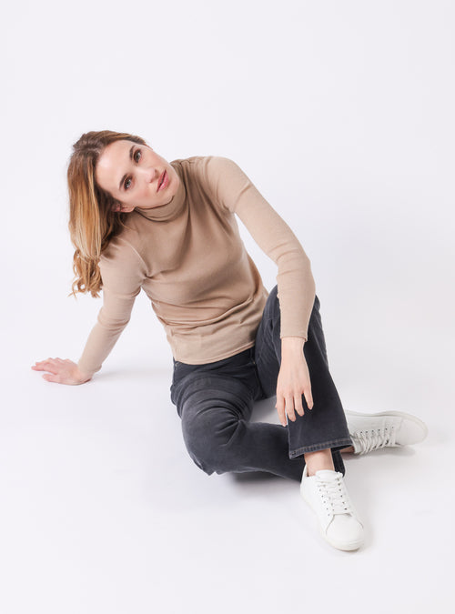 Pull chaussette col roulé laine et soie beige