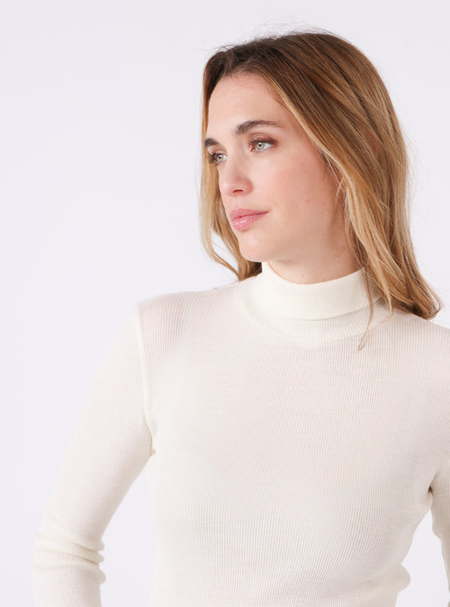 Pull chaussette col roulé laine et soie blanc