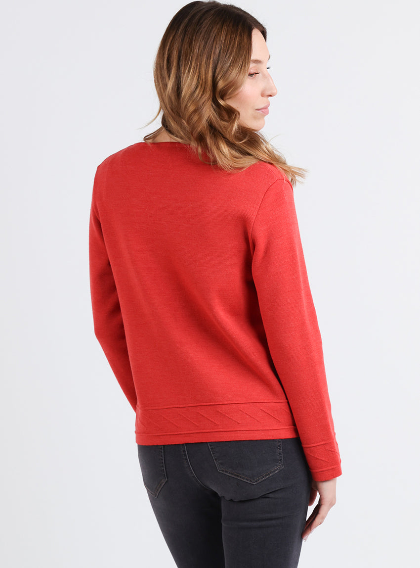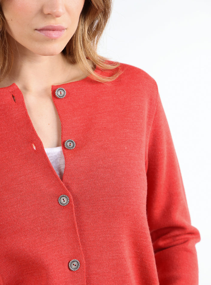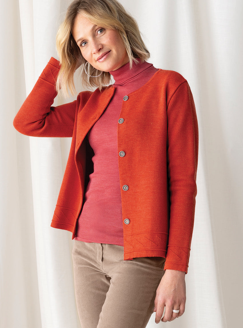 Veste courte femme en laine mérinos orange goyave
