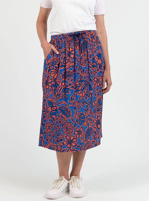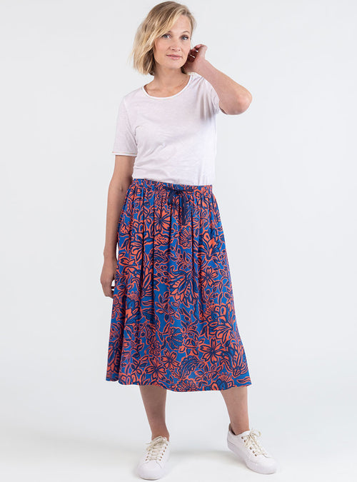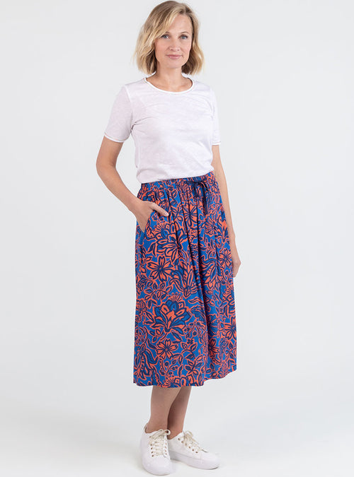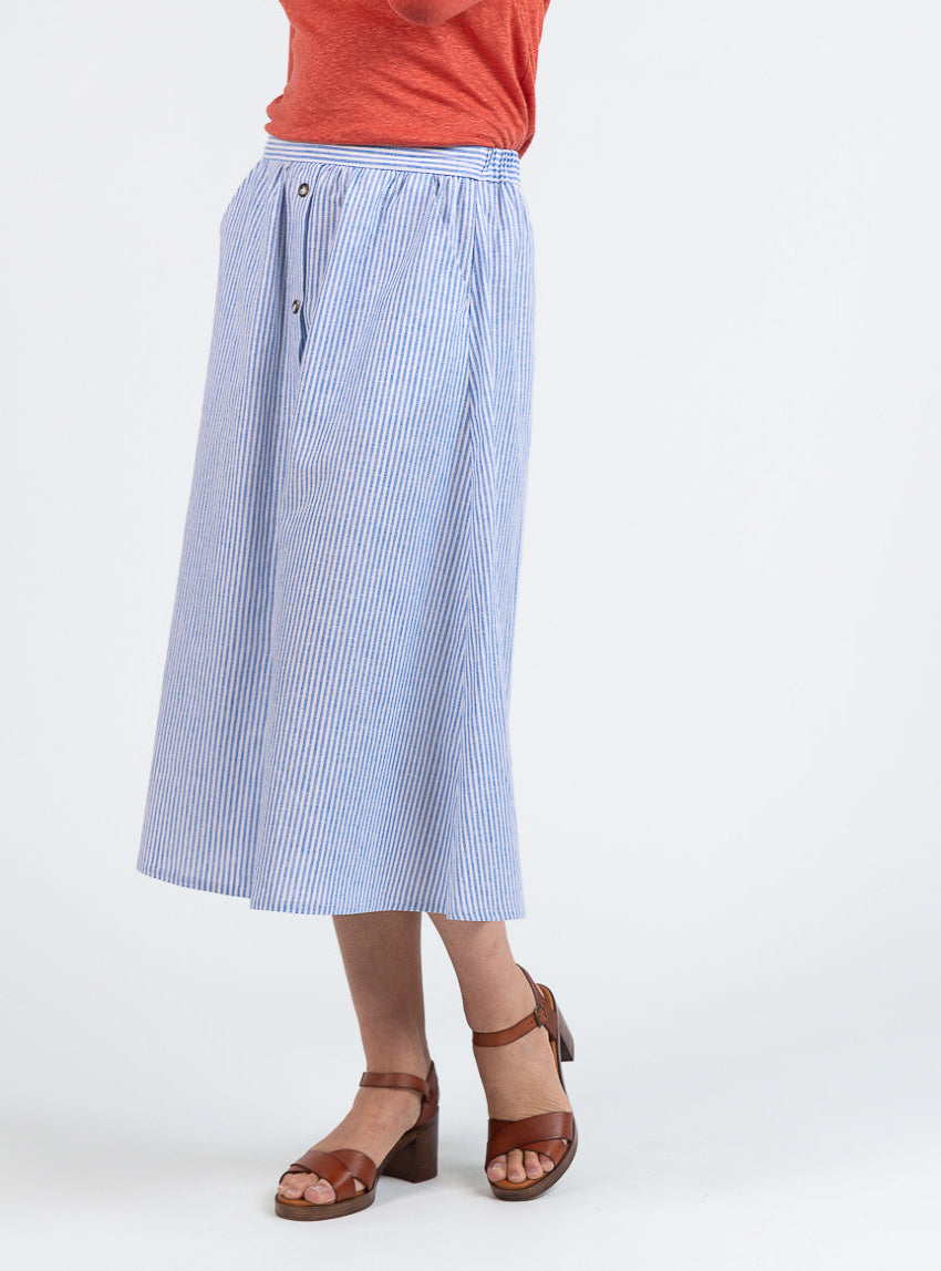 Jupe femme ample en coton et lin rayé bleu
