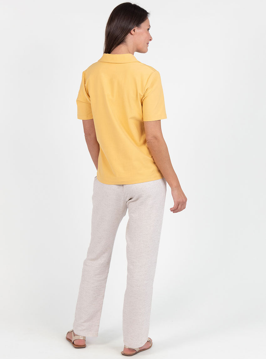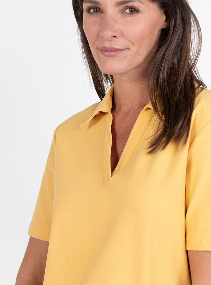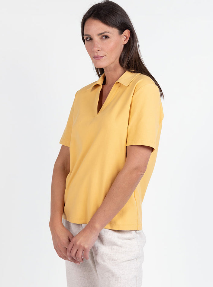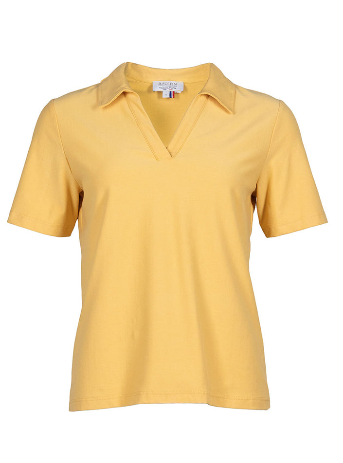 POLO FEMME EN MAILLE DE COTON JAUNE ÉPICÉ