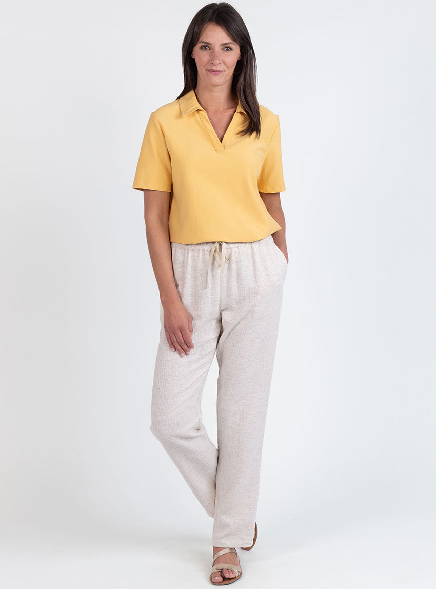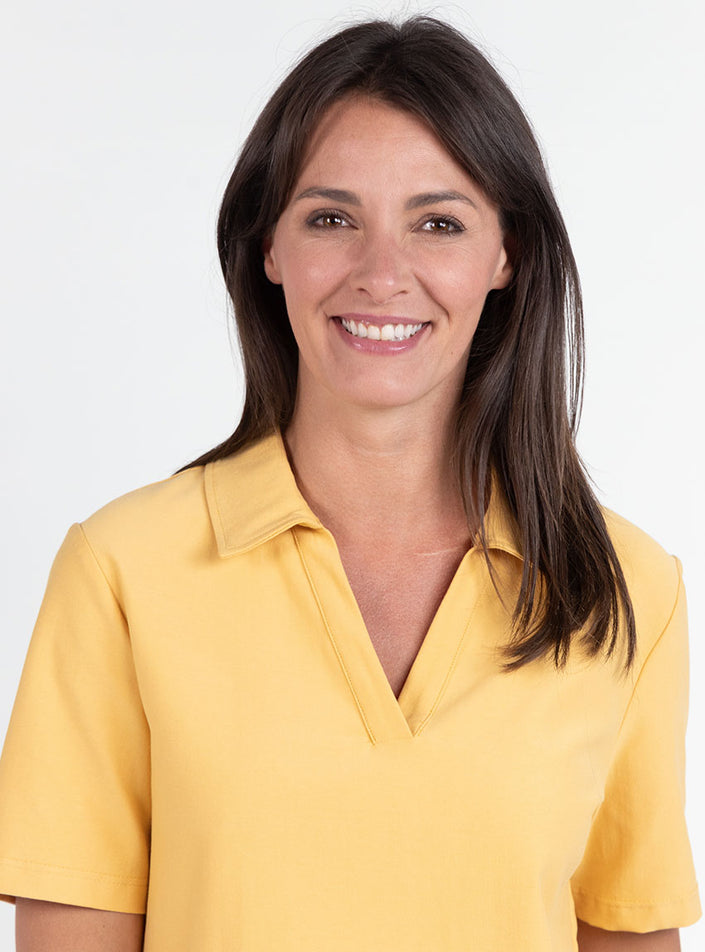 Ce polo femme Jaune Épice, fabriqué en France, revisite le polo classique avec une allure moderne et naturelle. Son col polo avec patte sans bouton...