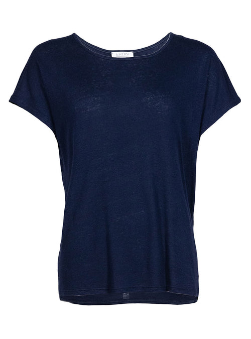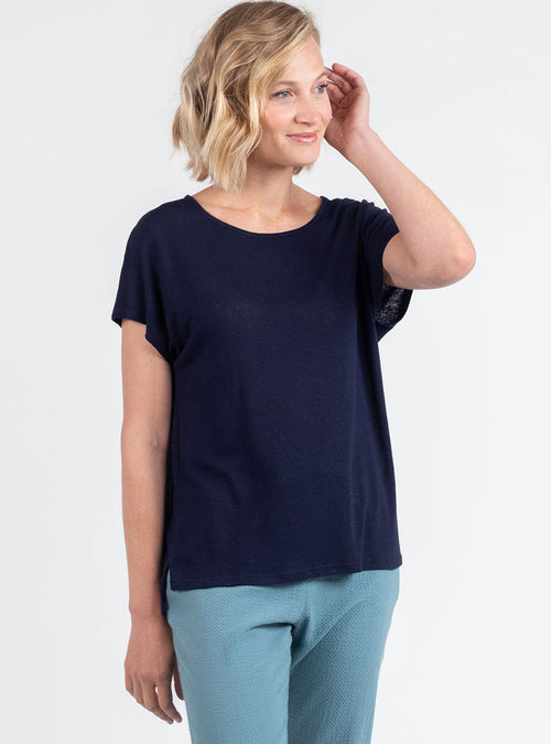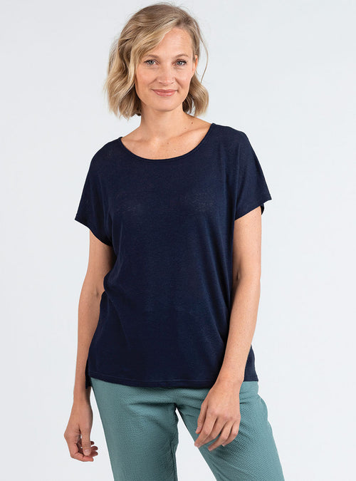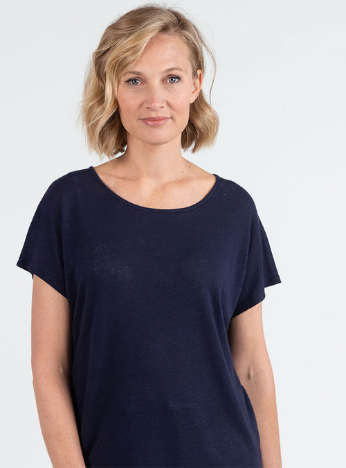 Top femme fluide en lin bleu marine
