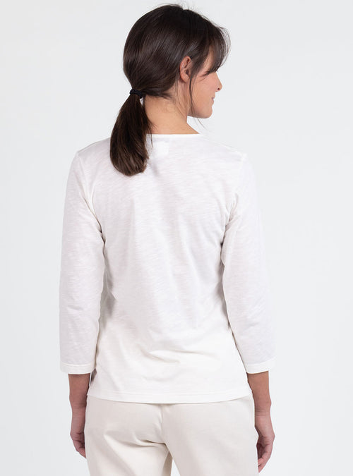 Tee-shirt femme encolure V en laine merinos blanc naturel