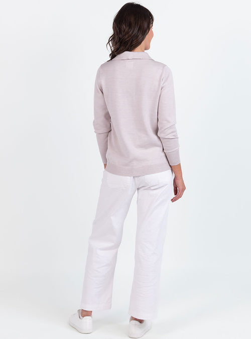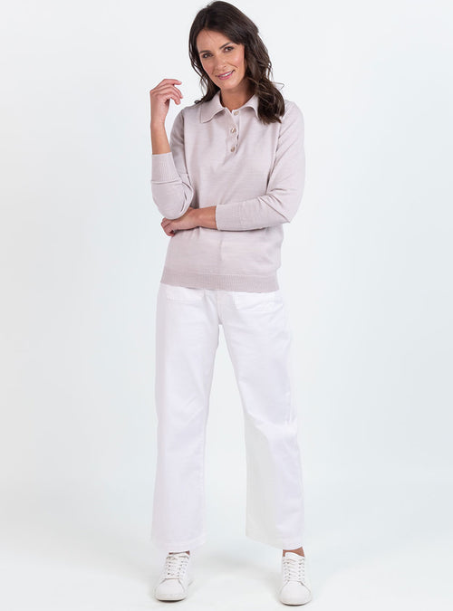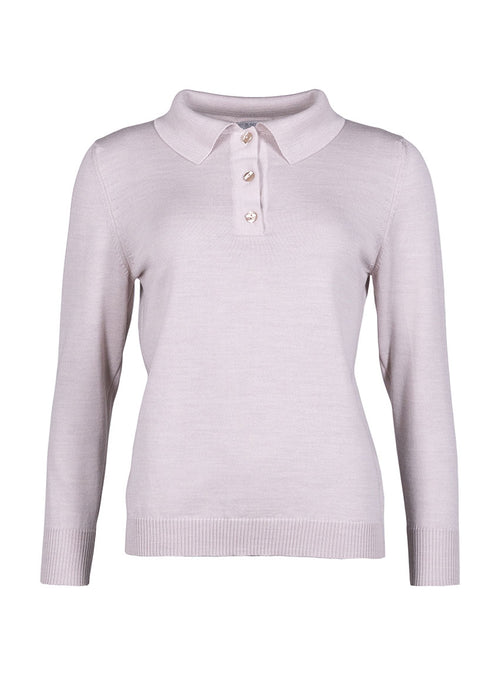 Pull femme col polo en laine beige naturel