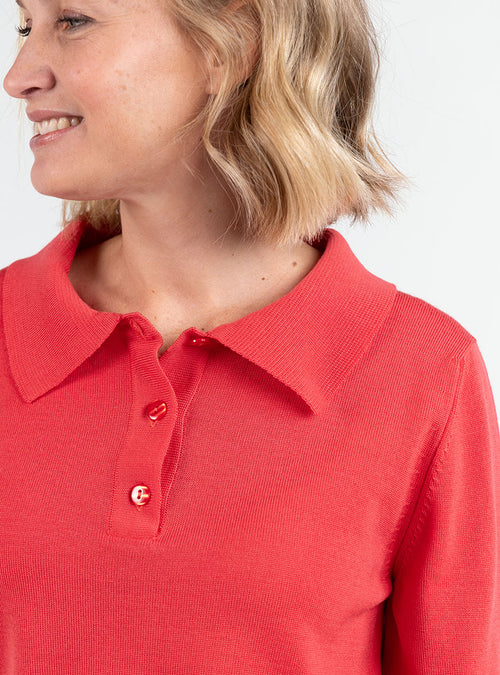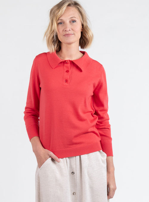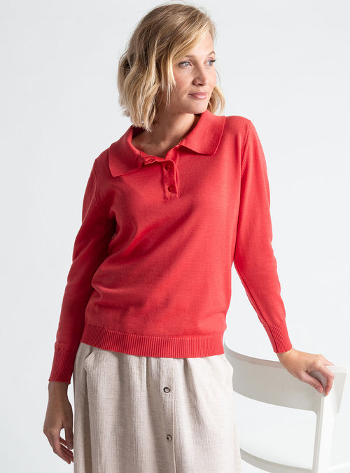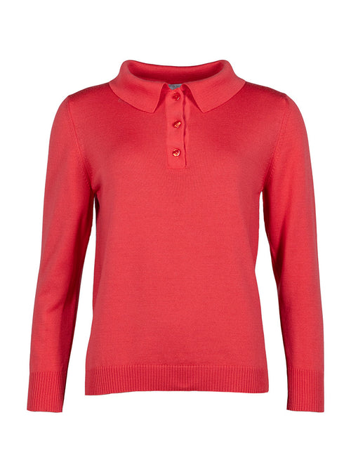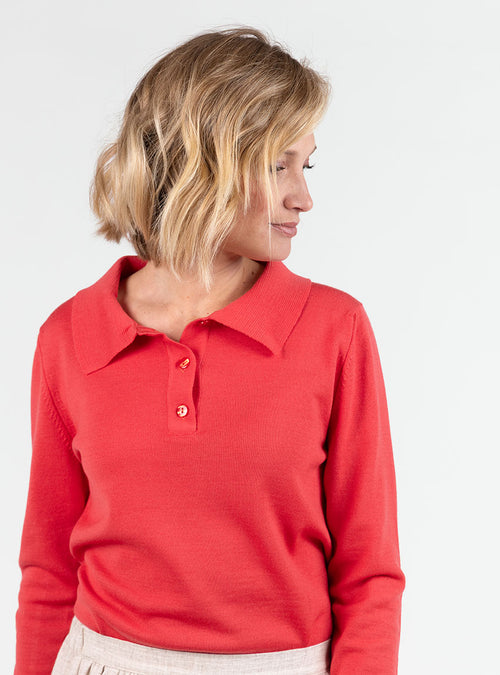 Pull femme col polo en laine rouge lumineux
