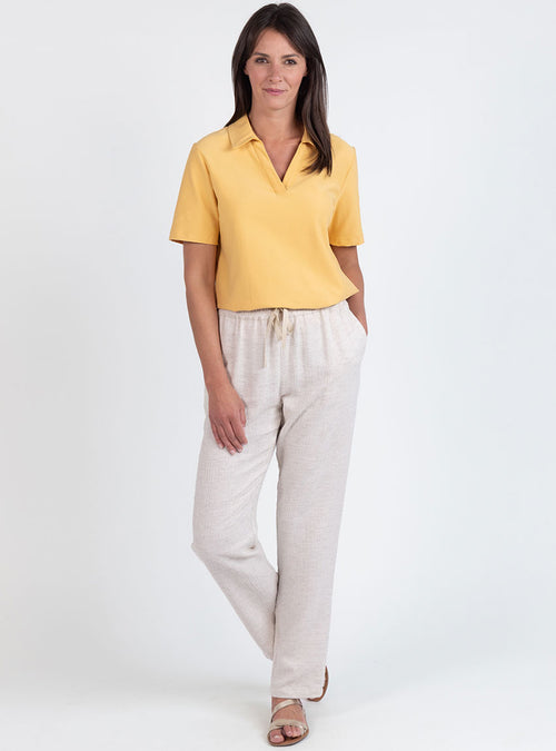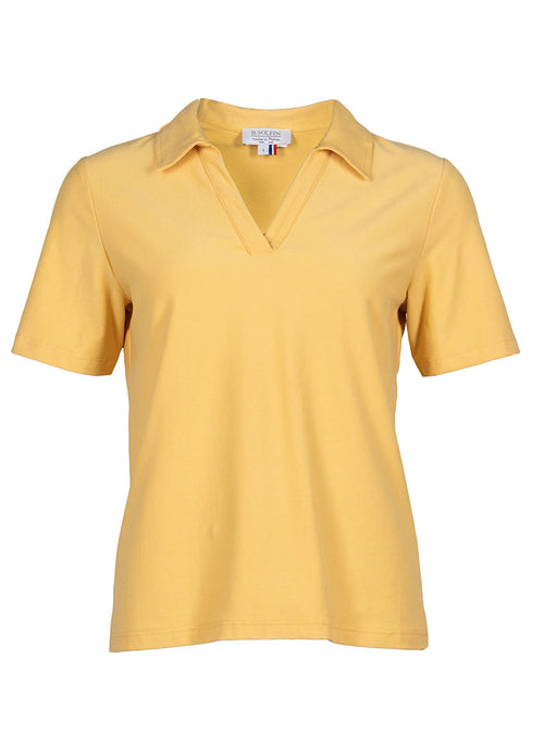 Polo femme en maille de coton jaune épicé