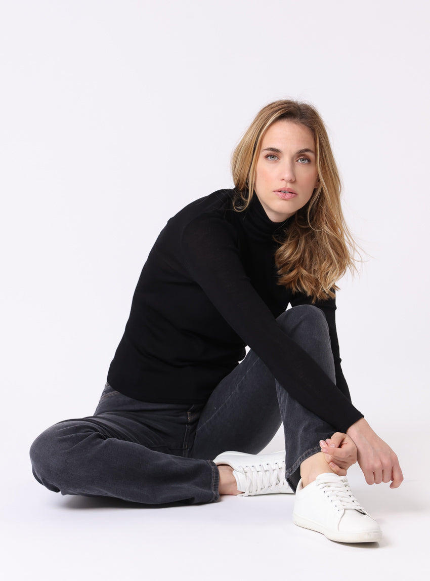 Ce pull chaussette femme à col roulé est un essentiel du vestiaire élégant. Sa coupe ajustée épouse délicatement vos formes, tandis que sa maille f...