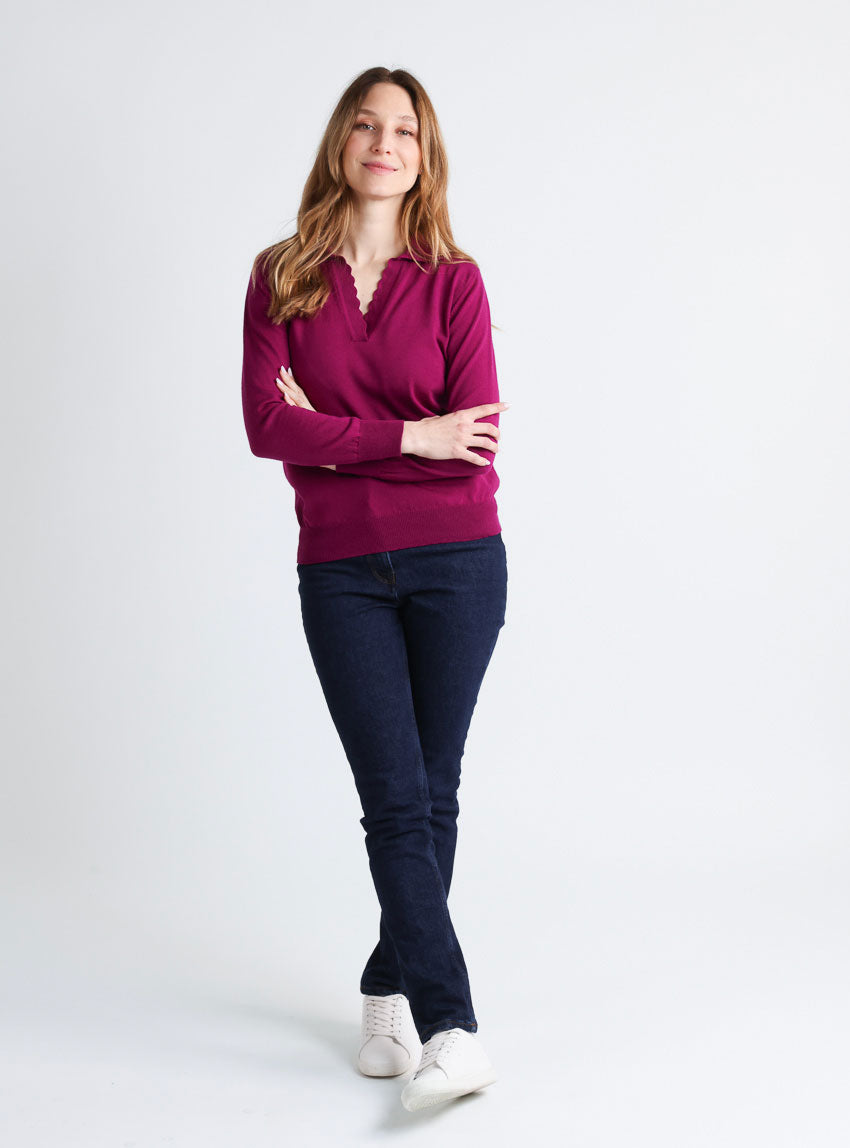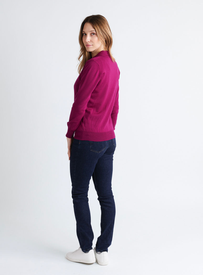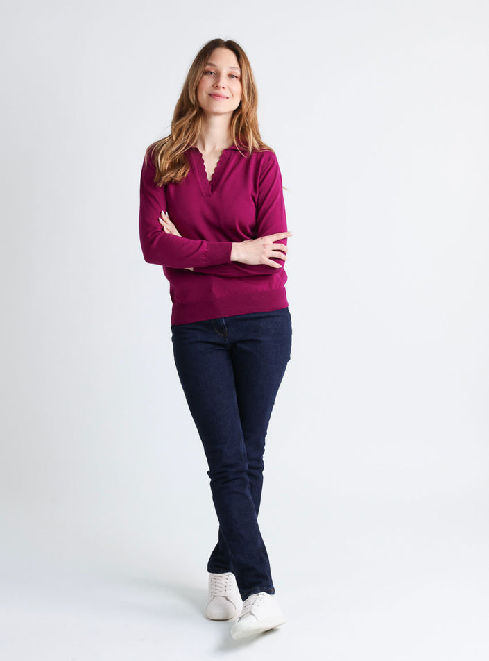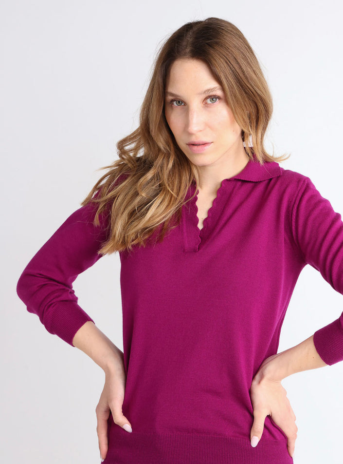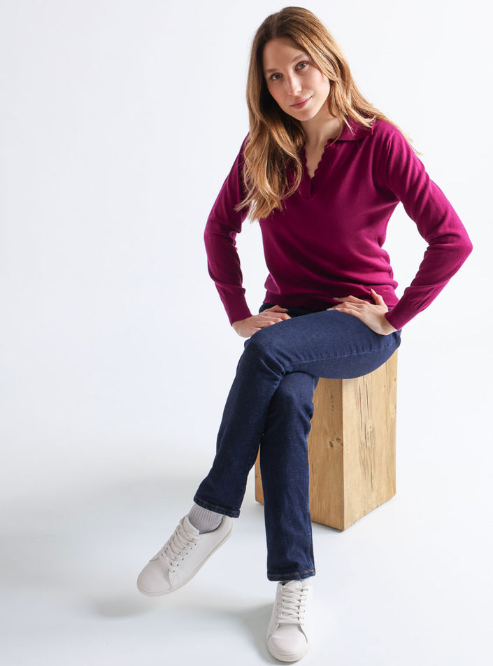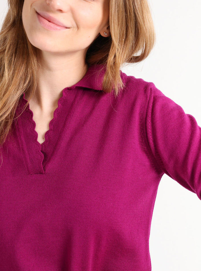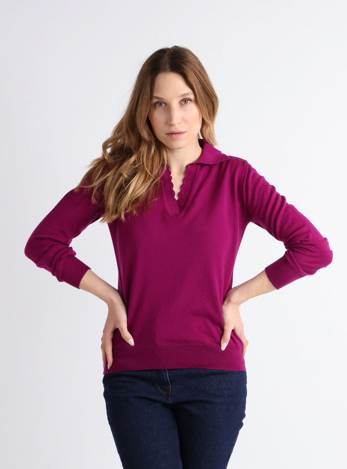 PULL COL POLO FEMME EN LAINE MÉRINOS VIOLET