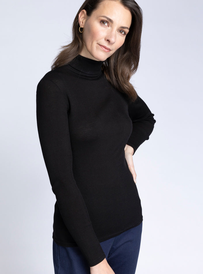 Ce pull col roulé femme en laine et soie est une pièce raffinée et essentielle. Sa coupe ajustée épouse délicatement la silhouette, offrant un look...
