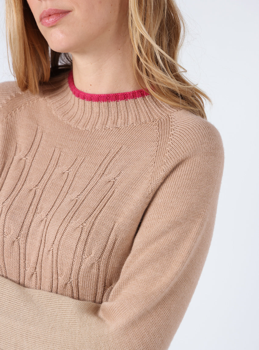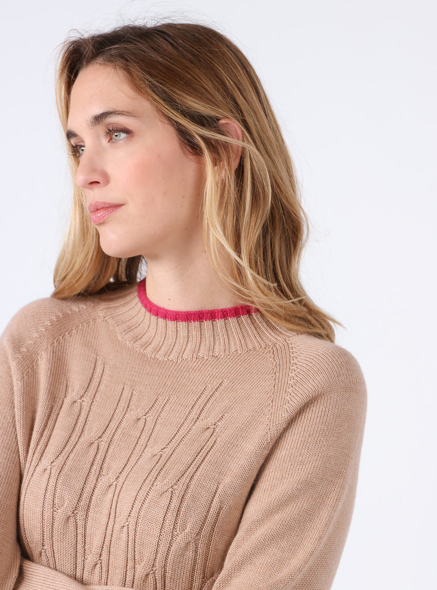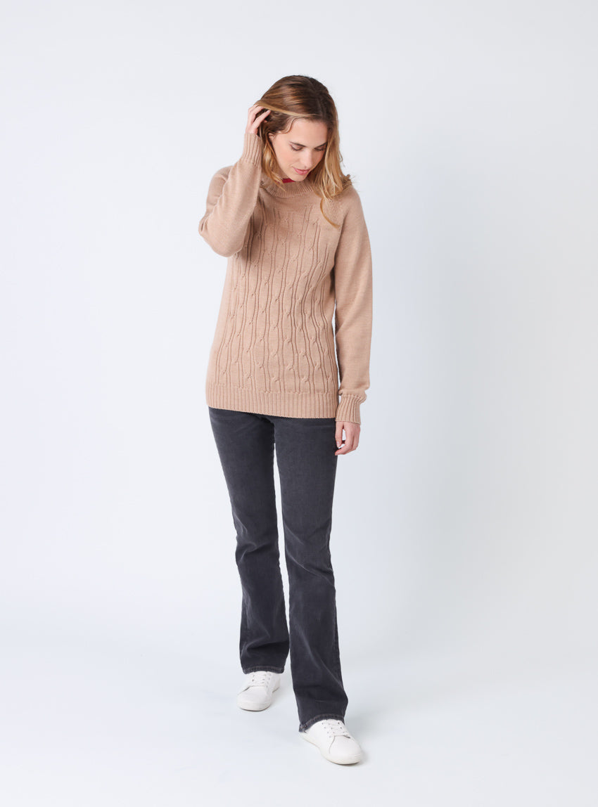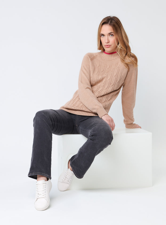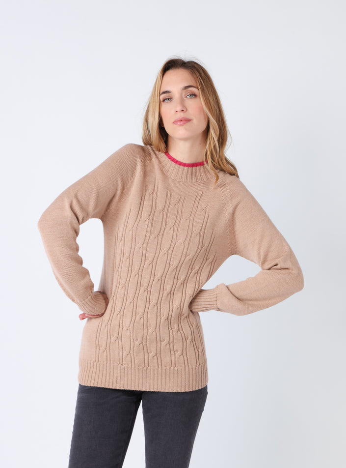 Ce pull en maille torsadée 100% laine mérinos est conçu en tricot intégral, une technique innovante qui évite les coutures pour un confort optimal....