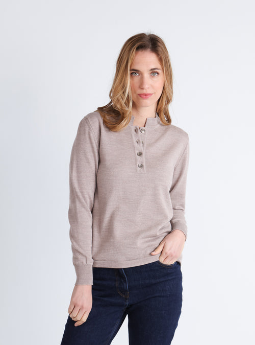 Pull femme col cheminée en laine mérinos Beige Chaud