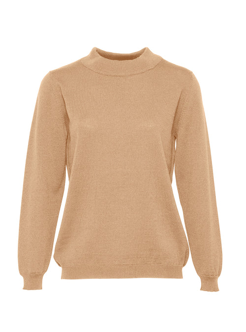 Pull femme col montant en laine mérinos Beige Sable