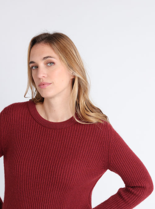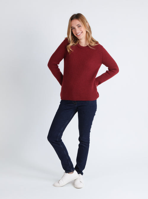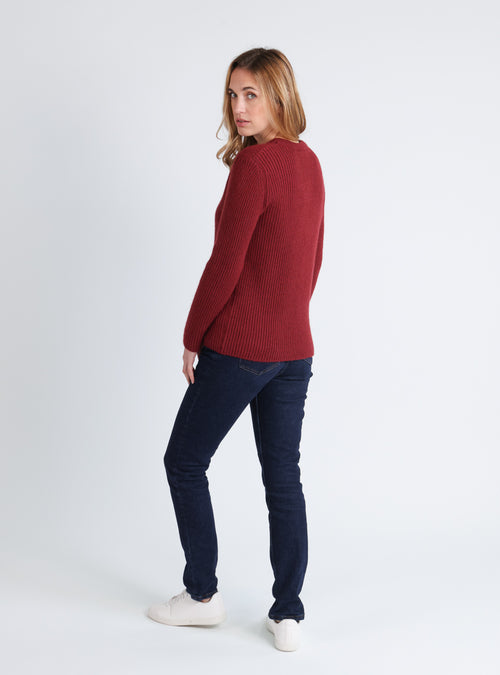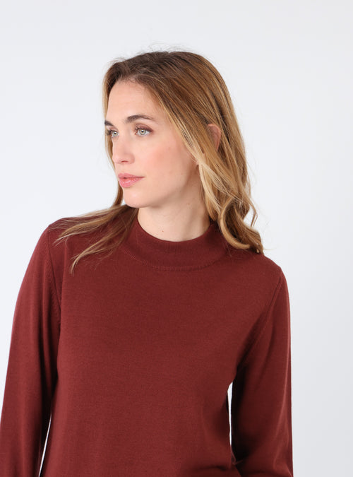 Pull femme col cheminée en laine mérinos Rouge Terre de Sienne
