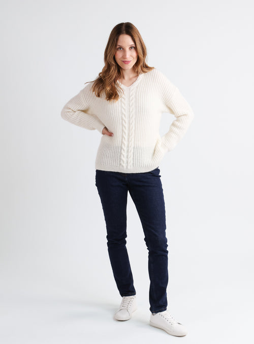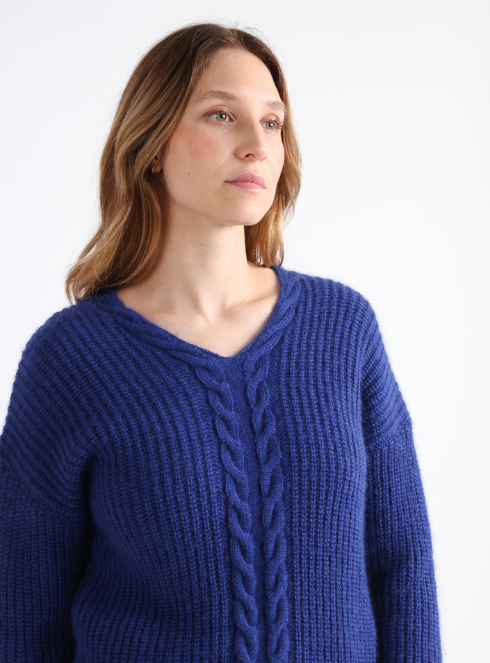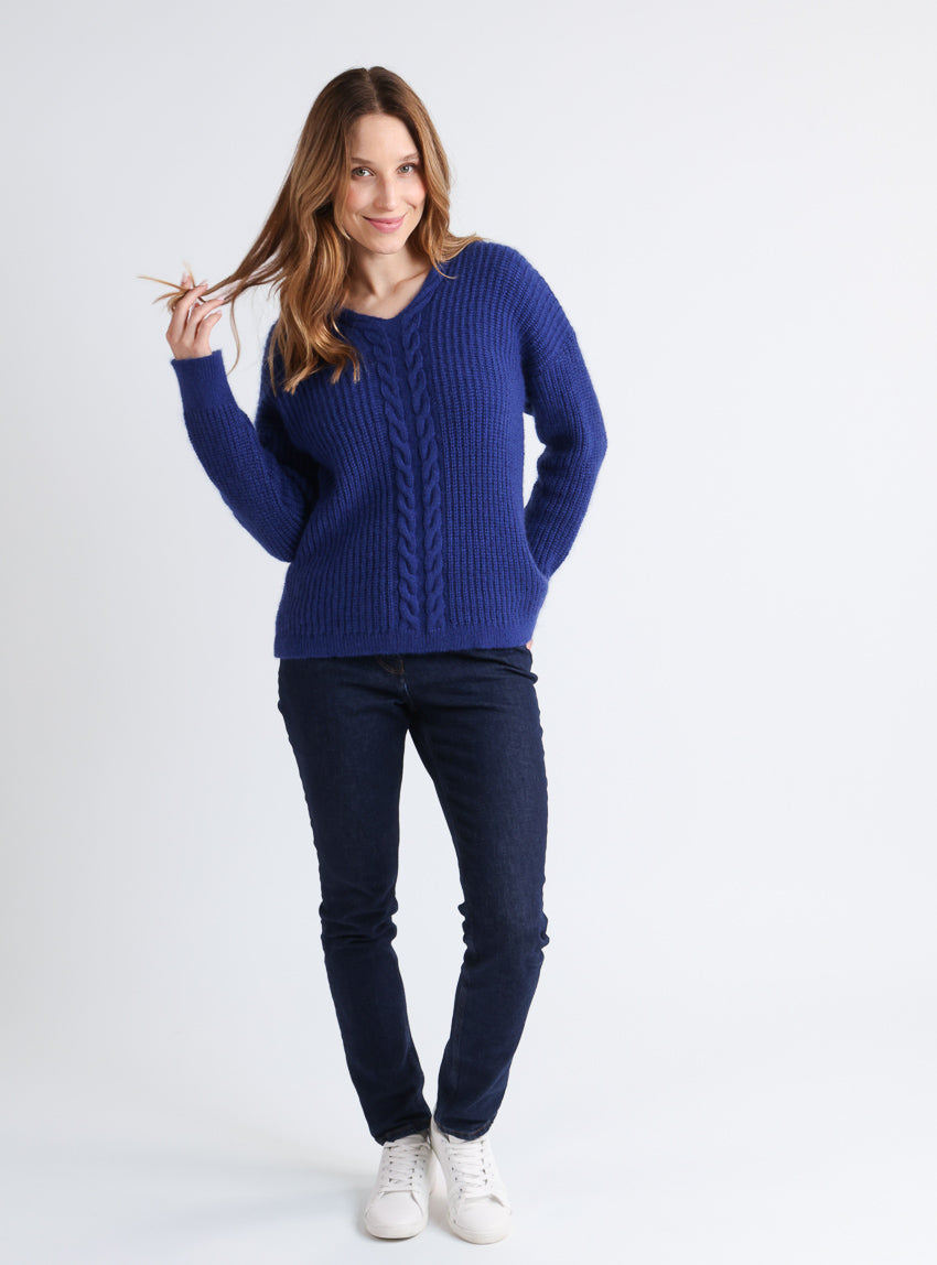 Ce pull femme en mohair bleu indigo est une pièce incontournable pour l’hiver. Fabriqué en France avec un savoir-faire unique, il séduit par son encolure V flatteuse et sa torsade centrale élégante. Un modèle à la fois confortable et stylé, parfait au quotidien comme pour des occasions habillées?