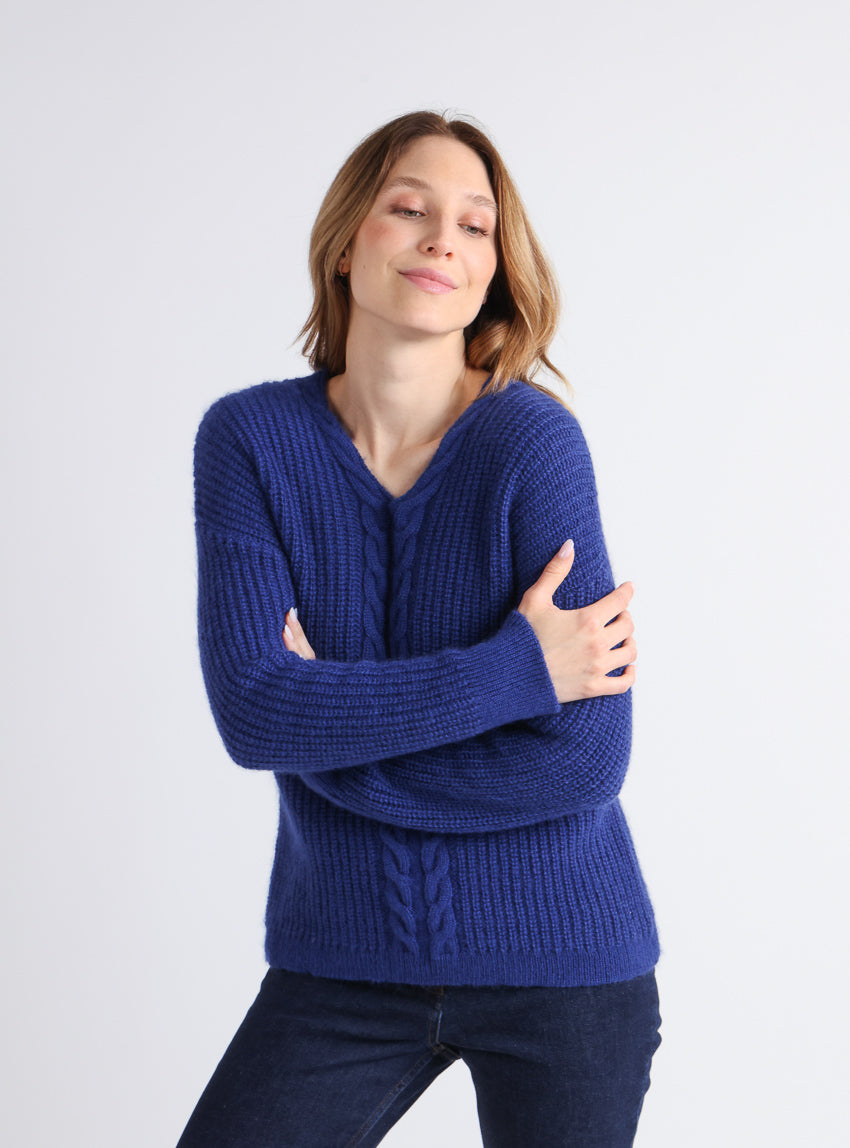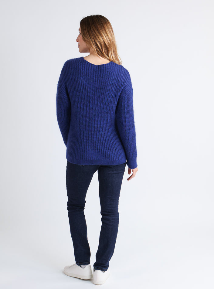 PULL FEMME MAILLE PERLÉE BLEU INDIGO