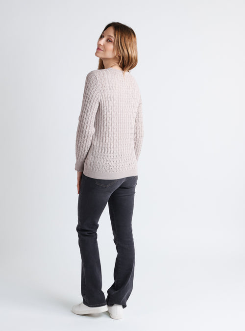 L'été, on mise sur le pull thermorégulateur en matière naturelle : lin, coton ou laine. Chez Maison Solfin, nous proposons des pulls d’épaisseurs différentes (un ou deux fils) pour profiter d’une chaleur plus modérée à la belle saison. Le petit pull fin en laine Made in France vous gardera au chaud. Matins frais, soirées fraîches, petites brises marines...La laine est la meilleure matière naturelle été comme hiver pour réchauffer le corps tout en le gardant au sec ! Le pull d'été à manches courtes, manches 3/4 ou manches longues est l'indispensable de tout dressing. Tantôt glissé sous une veste ou un gilet long, tantôt porté seul avec un jean, une jupe ou un pantacourt. Il s'accorde facilement avec toutes les tenues et s'accessoirise à l'infini : sautoir, collier, bracelet, étole, sac à main.... Intemporel, il traverse toutes les saisons et dure dans le temps.