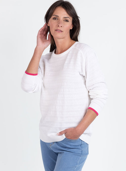 L'été, on mise sur le pull thermorégulateur en matière naturelle : lin, coton ou laine. Chez Maison Solfin, nous proposons des pulls d’épaisseurs différentes (un ou deux fils) pour profiter d’une chaleur plus modérée à la belle saison. Le petit pull fin en laine Made in France vous gardera au chaud. Matins frais, soirées fraîches, petites brises marines...La laine est la meilleure matière naturelle été comme hiver pour réchauffer le corps tout en le gardant au sec ! Le pull d'été à manches courtes, manches 3/4 ou manches longues est l'indispensable de tout dressing. Tantôt glissé sous une veste ou un gilet long, tantôt porté seul avec un jean, une jupe ou un pantacourt. Il s'accorde facilement avec toutes les tenues et s'accessoirise à l'infini : sautoir, collier, bracelet, étole, sac à main.... Intemporel, il traverse toutes les saisons et dure dans le temps.