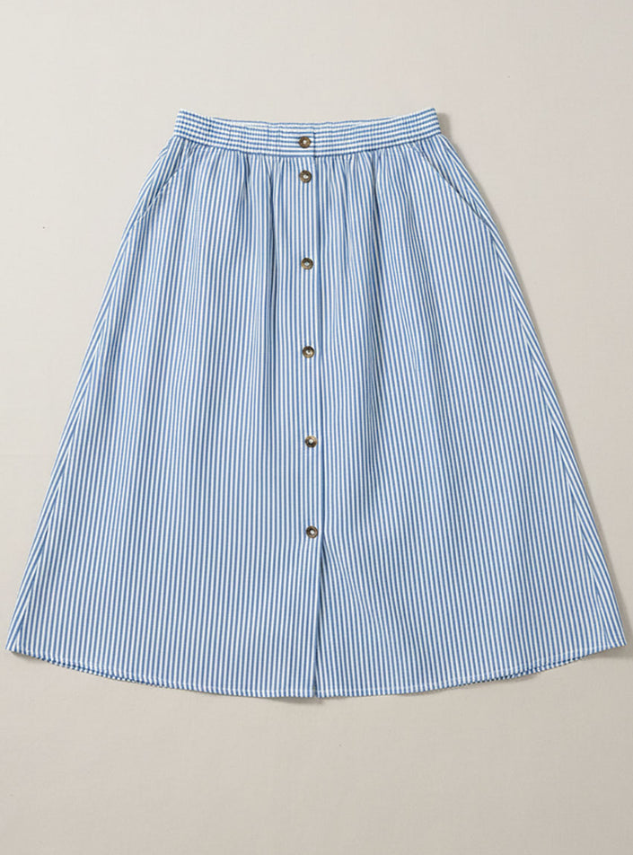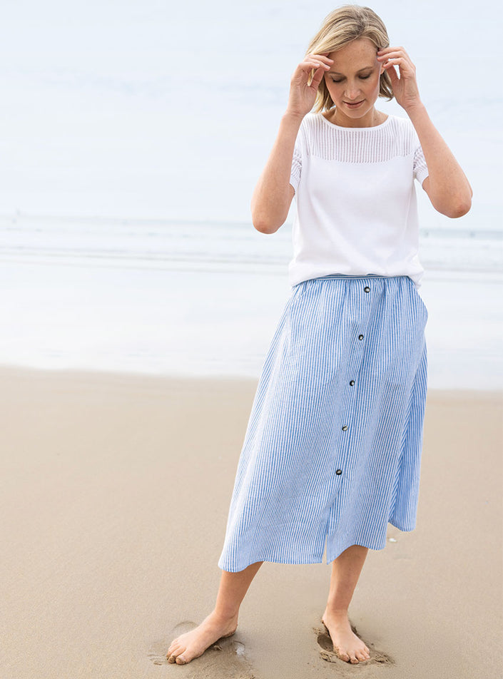 Jupe femme ample en coton et lin rayé bleu