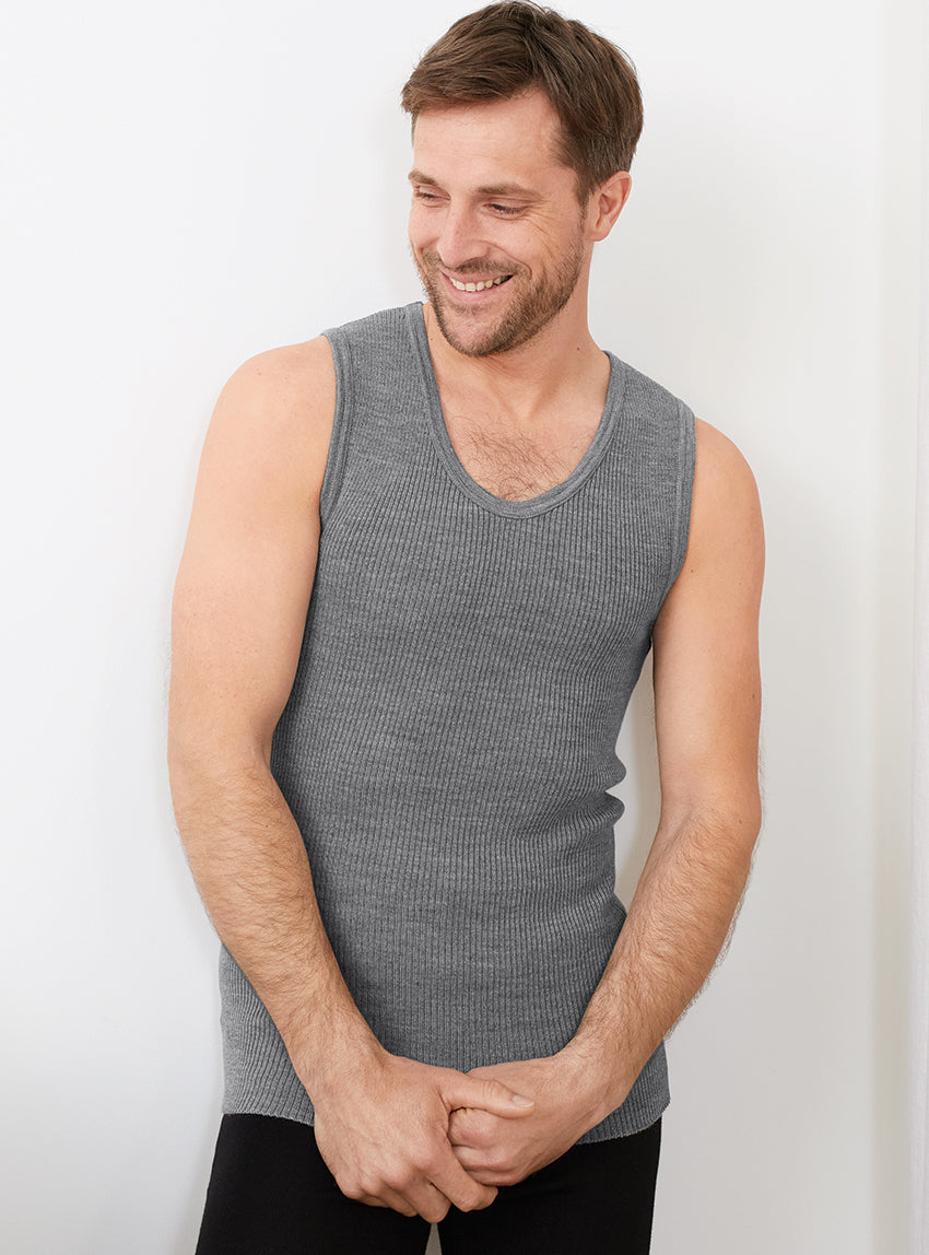 Ce maillot de corps sans manches en laine mérinos gris léger a été conçu pour offrir une isolation maximale sans entraver les mouvements grâce à sa...