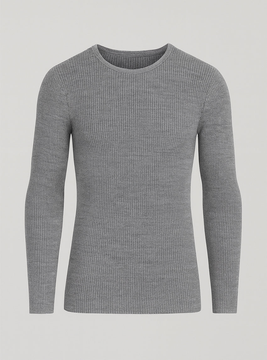 TEE-SHIRT THERMIQUE ÉPAIS MANCHES LONGUES HOMME EN LAINE GRIS LÉGER