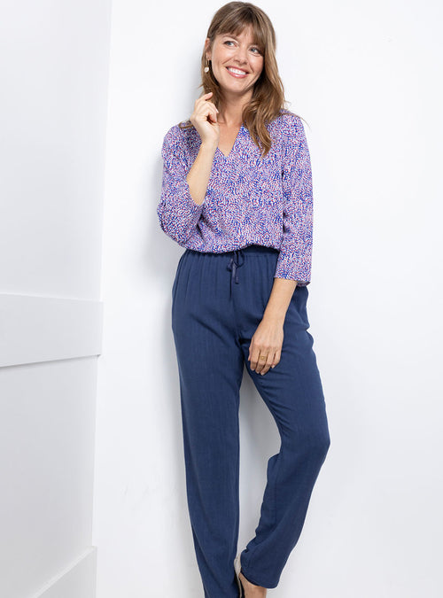 Cette blouse femme en 100% viscose est la pièce parfaite pour conjuguer confort et raffinement. Fabriquée en France, elle séduit par sa coupe fluid...