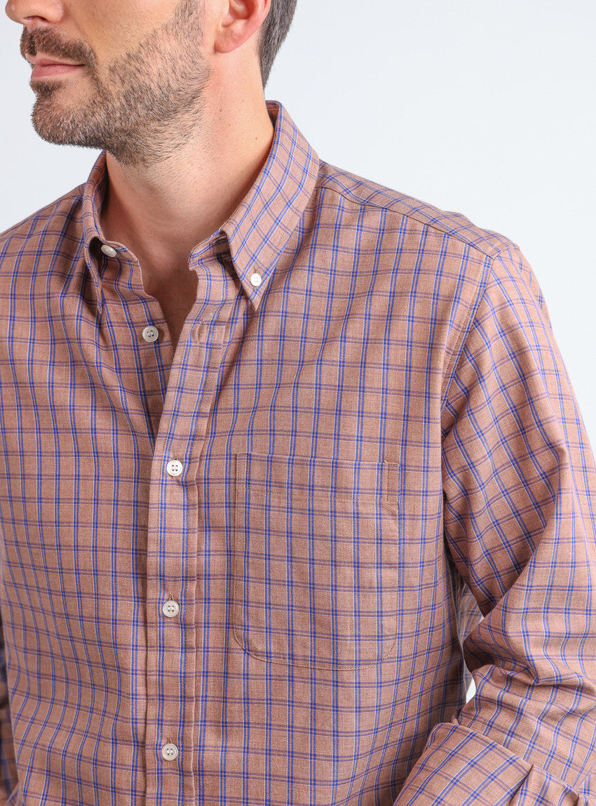Cette chemise homme marron caramel en 100% coton est idéale pour affronter l’hiver avec confort et style. Sa coupe droite et son col à pointes bout...