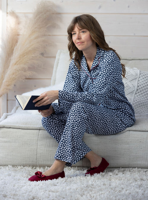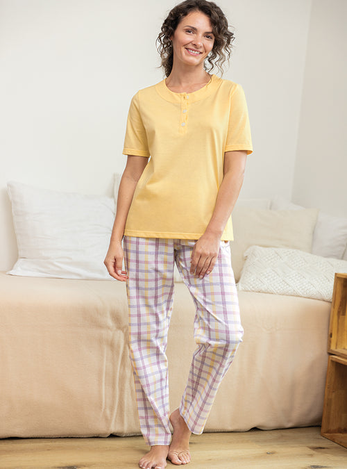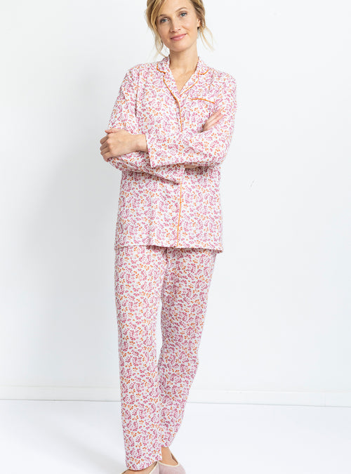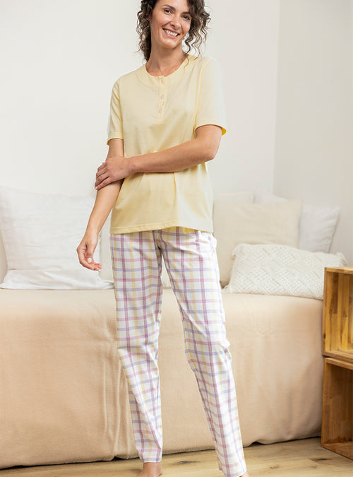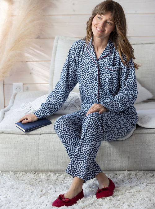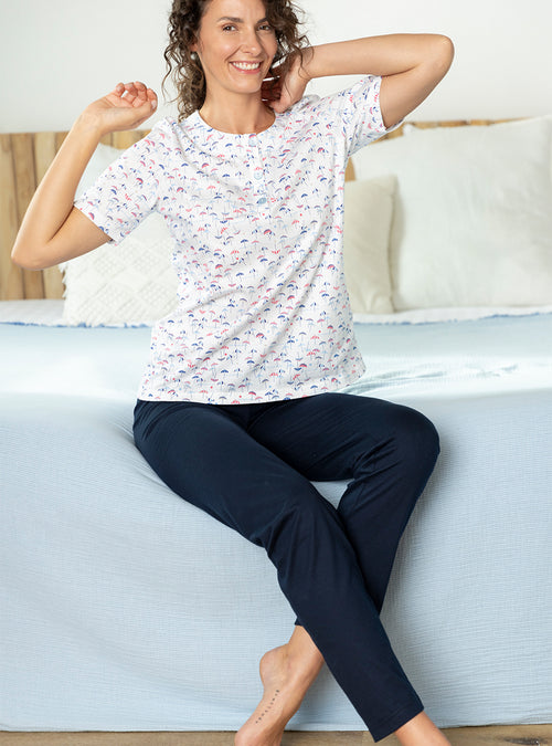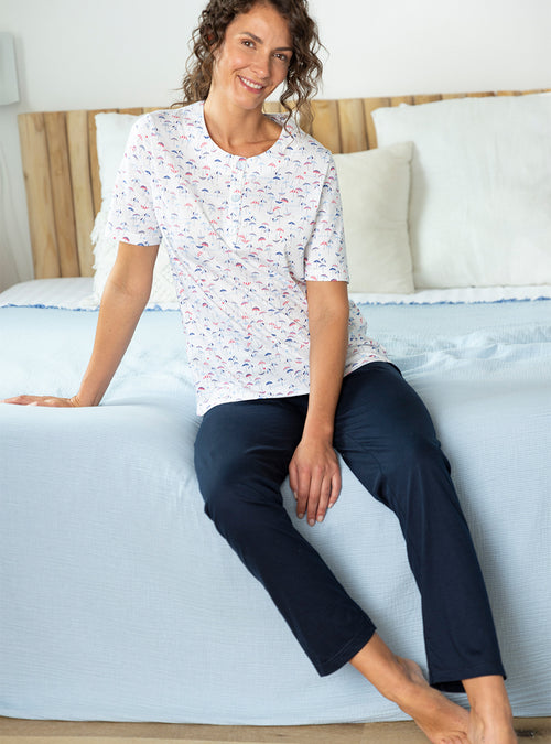 Le confort est le maître mot pour nos vêtements de nuit. Nous vous proposons des formes évasées ou droites et des coupes longues qui vous envelopperons. Nos pyjamas femme : composés d'un tee-shirt ou d’une veste et d’un pantalon sont réalisés dans un pur coton. Léger ou épais en fonction de la saison, choisissez le pyjama qui vous convient : à carreaux, fleuri, uni ou rayé. Pour un hiver rigoureux, nous déclinons nos chemises de nuit et pyjamas dans un coton gratté très doux et très chaud. Nos pyjamas femme et nos chemises de nuits sont de fabrication française.