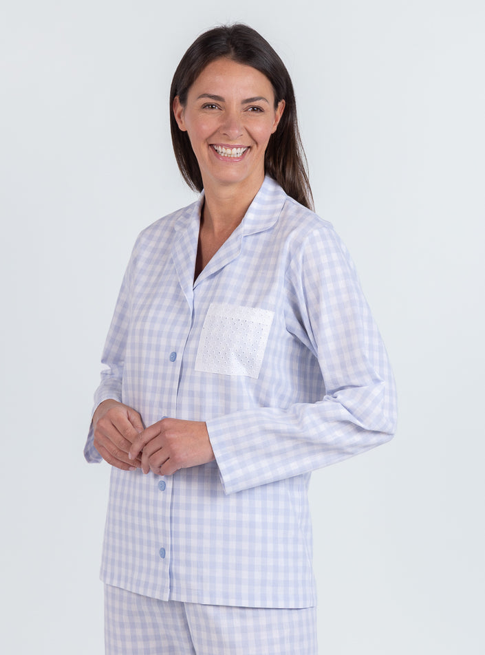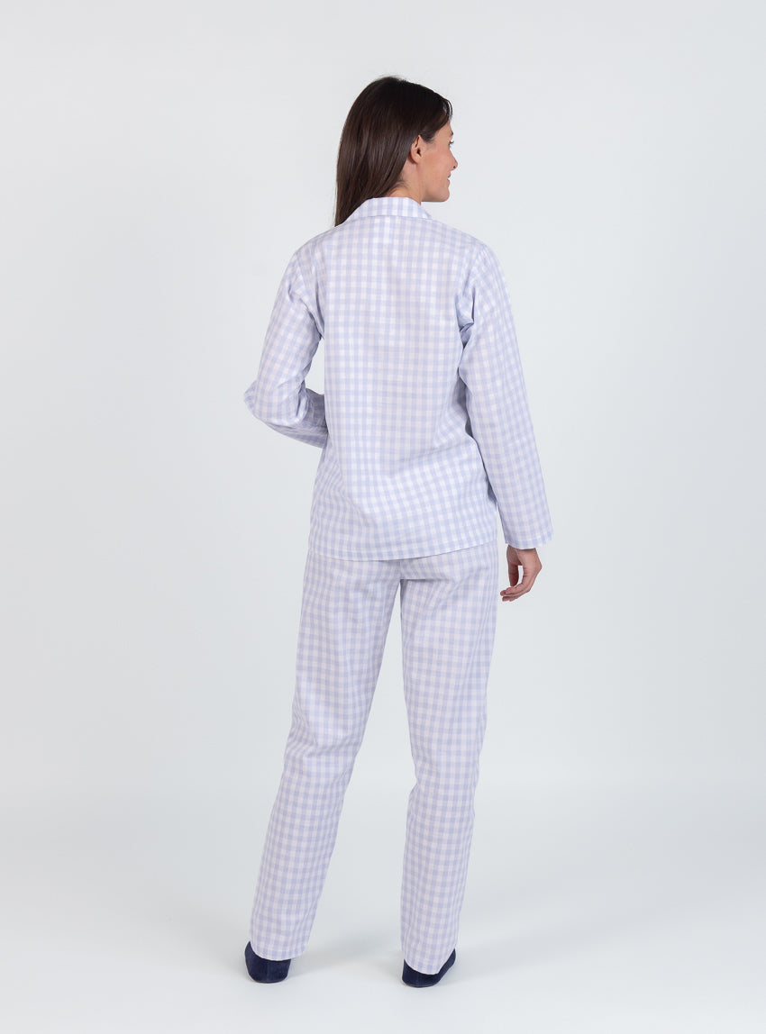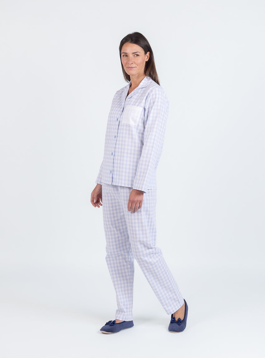 Pyjama femme en coton vichy bleu pastel