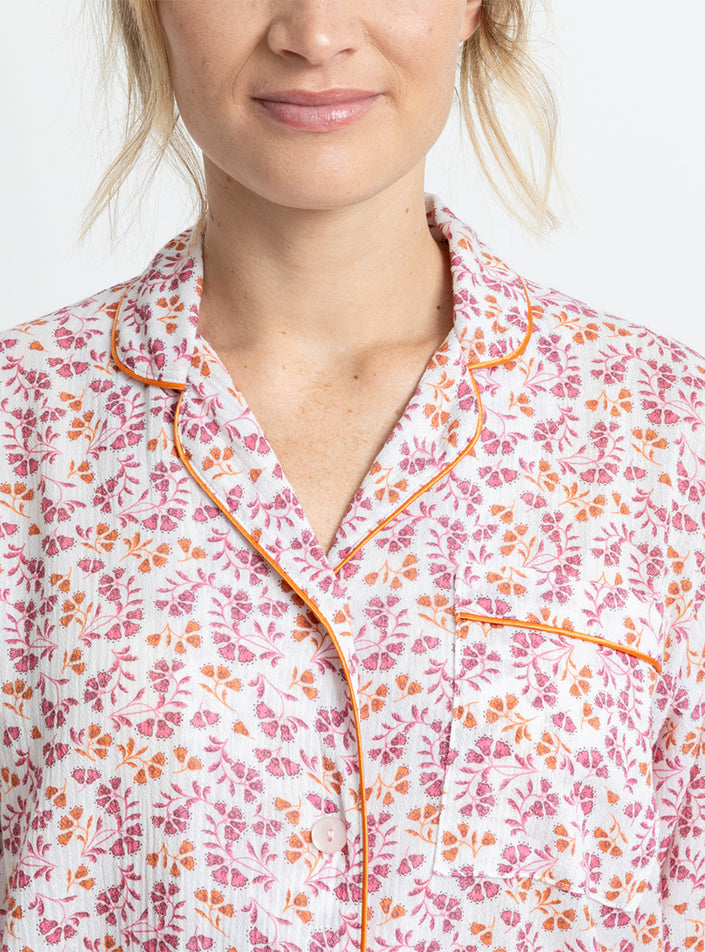 Ce pyjama femme en coton floral rose est un modèle intemporel qui conjugue charme, confort et qualité. Confectionné en France à partir de 100% coto...