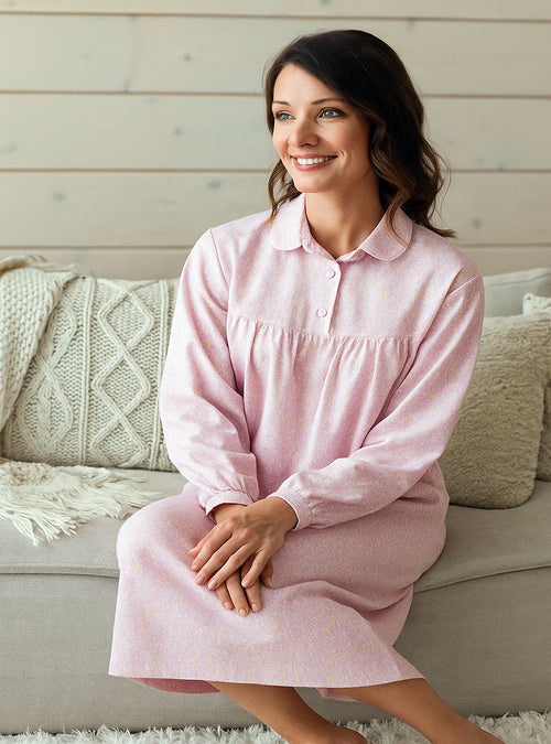 Pour celles qui préfèrent les chemises de nuit aux pyjamas, succombez au confort et à l'élégance de nos chemises de nuit avec des imprimés fleuris ou bien unies. Les chemises de nuit sont en coton, manches courtes pour l’été et manches longues pour l’hiver, col rond ou col polo avec ou sans boutonnage.