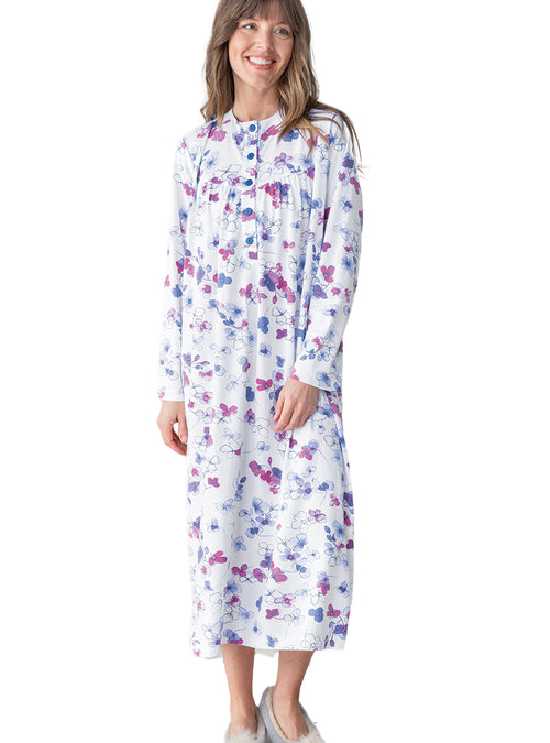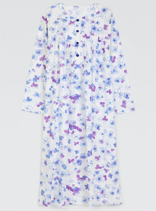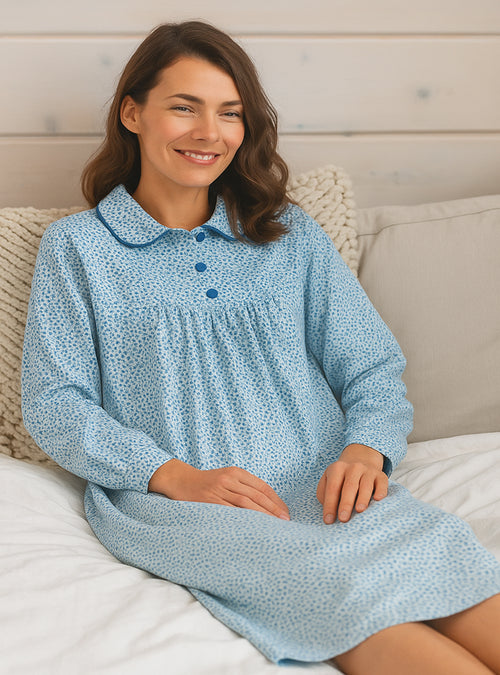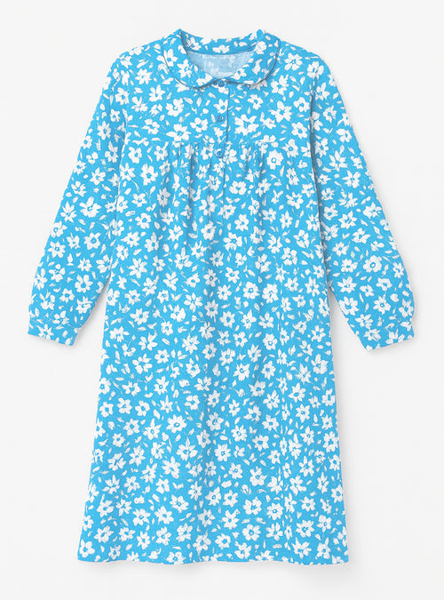Chemise de nuit femme imprimés fleuris en coton floral bleu