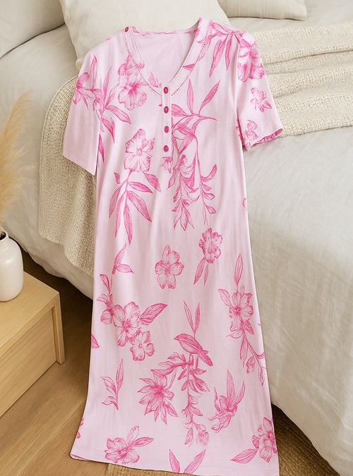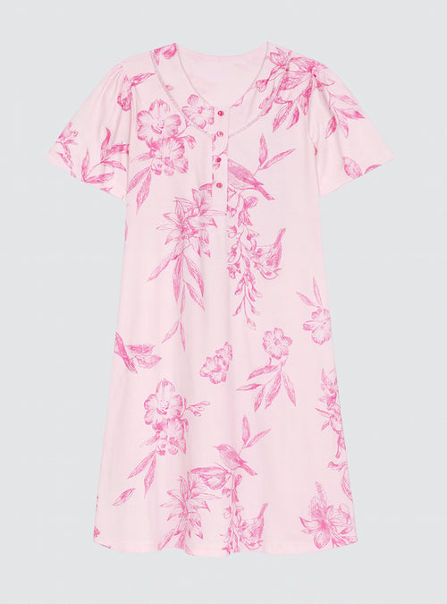 Chemise de nuit femme imprimés fleuris en coton laurier rose