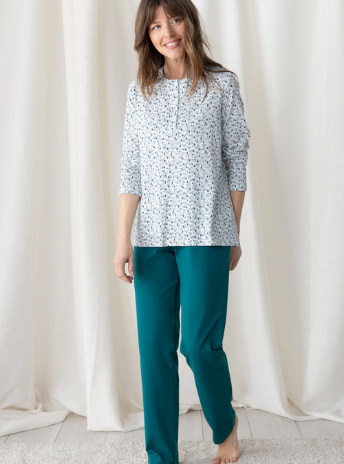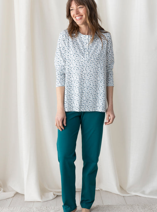 Le confort est le maître mot pour nos vêtements de nuit. Nous vous proposons des formes évasées ou droites et des coupes longues qui vous envelopperons. Nos pyjamas femme : composés d'un tee-shirt ou d’une veste et d’un pantalon sont réalisés dans un pur coton. Léger ou épais en fonction de la saison, choisissez le pyjama qui vous convient : à carreaux, fleuri, uni ou rayé. Pour un hiver rigoureux, nous déclinons nos chemises de nuit et pyjamas dans un coton gratté très doux et très chaud. Nos pyjamas femme et nos chemises de nuits sont de fabrication française.