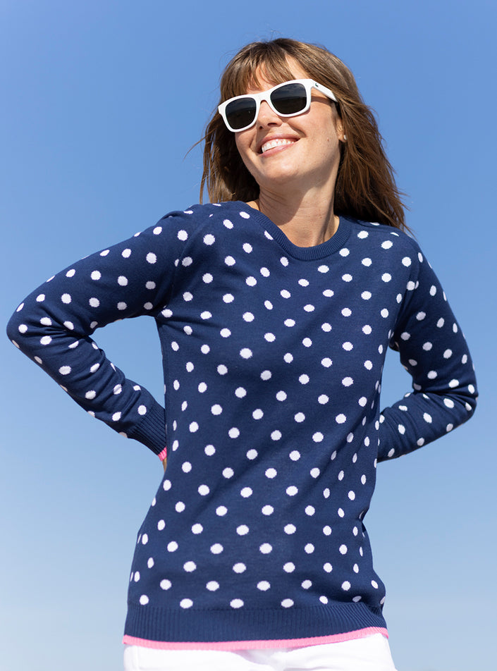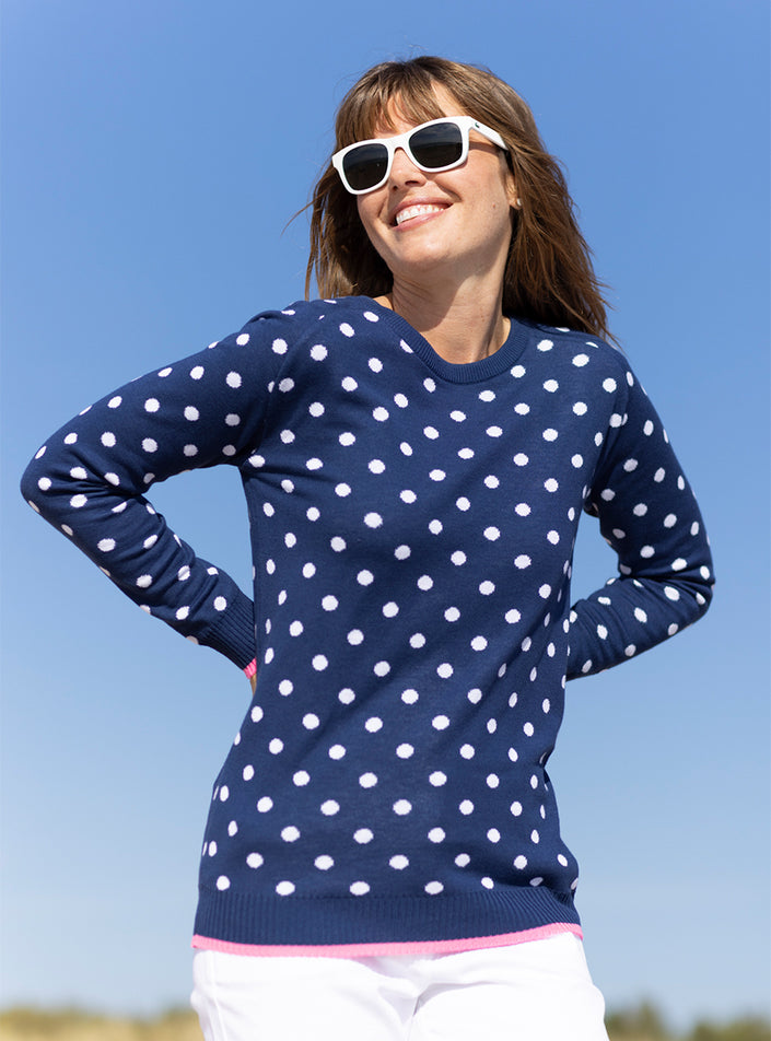 Ce pull à pois allie confort et style avec sa coupe ajustée et son allure décontractée. Inspiré de l’univers sweat, il se distingue par ses pois en...