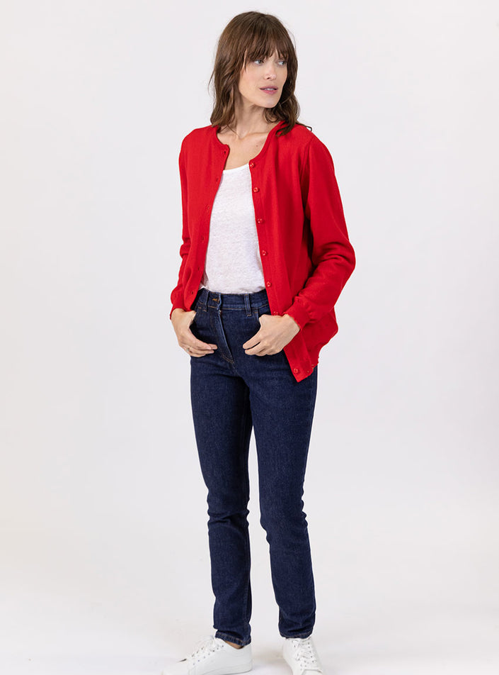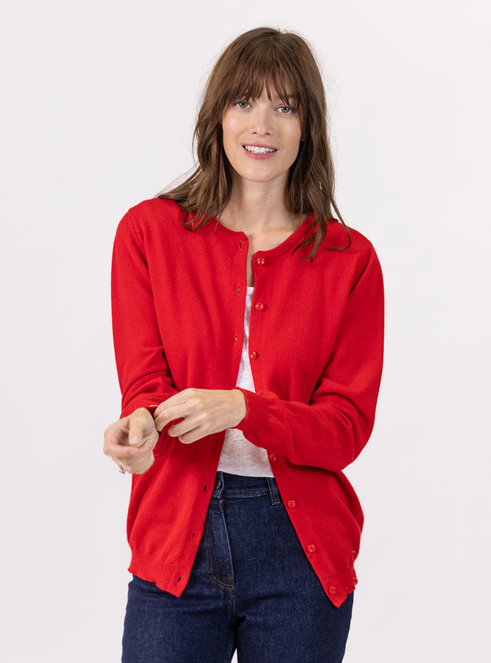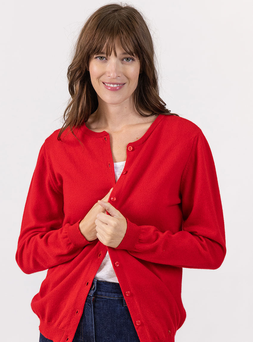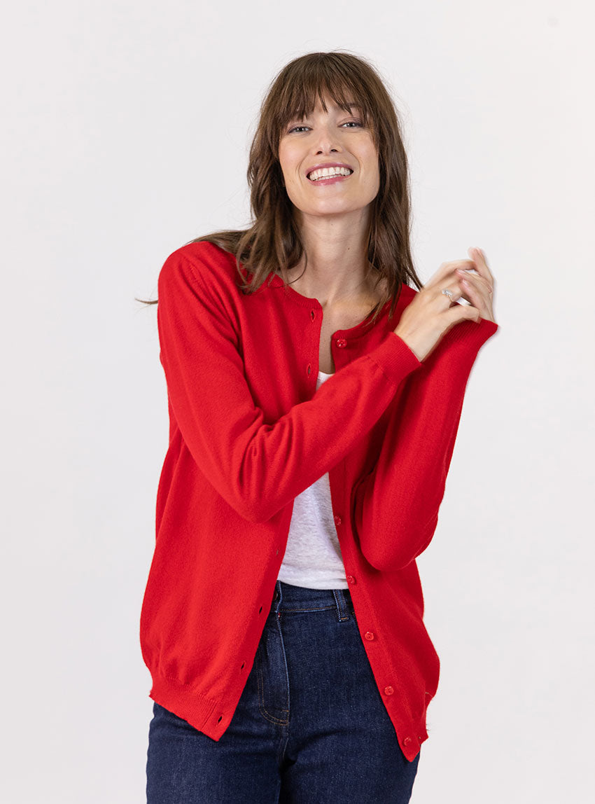 Ce cardigan 100 % cachemire rouge cerise est une pièce raffinée qui conjugue confort et élégance. Sa ligne droite légèrement ajustée met en valeur ...
