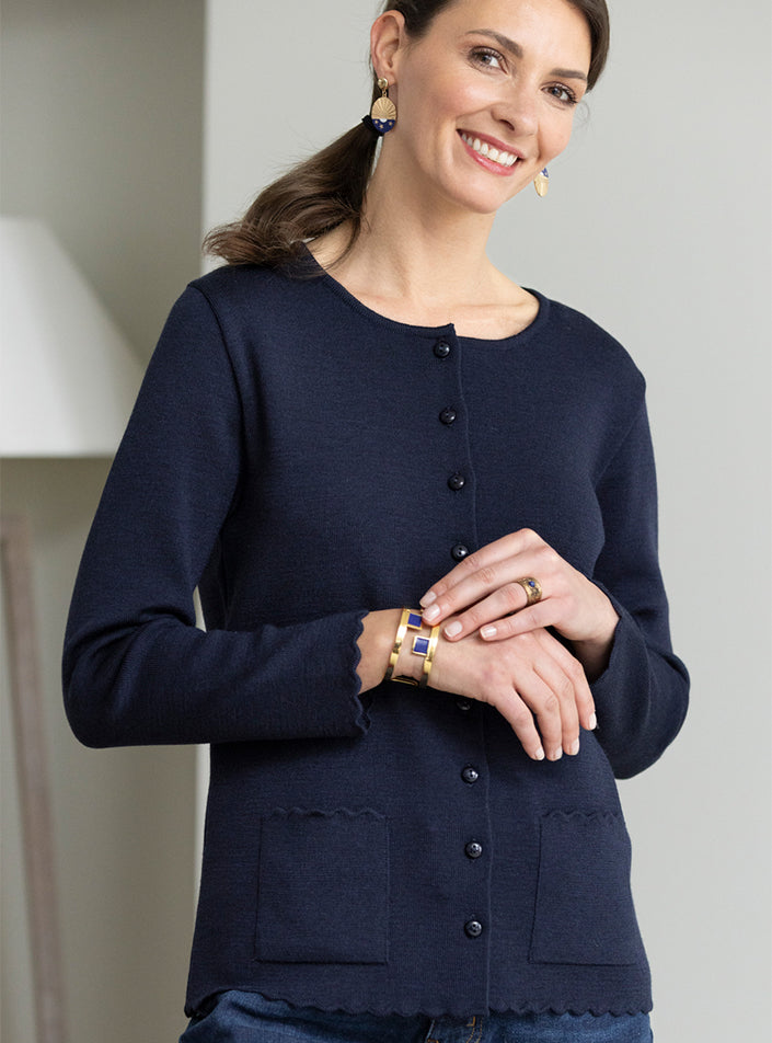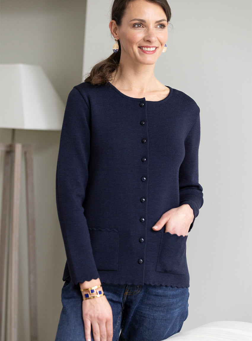 CARDIGAN FEMME EN LAINE MÉRINOS BLEU MARINE