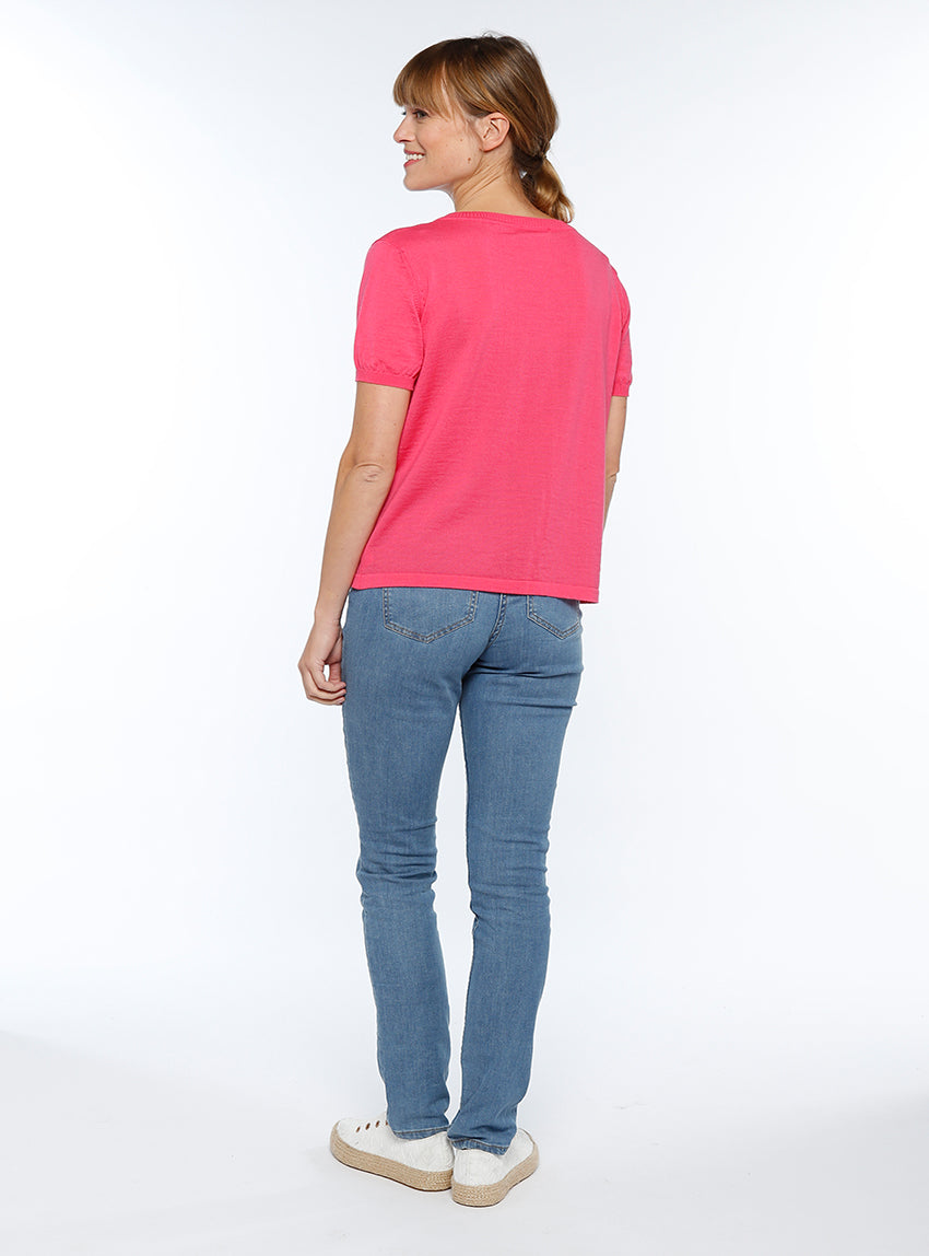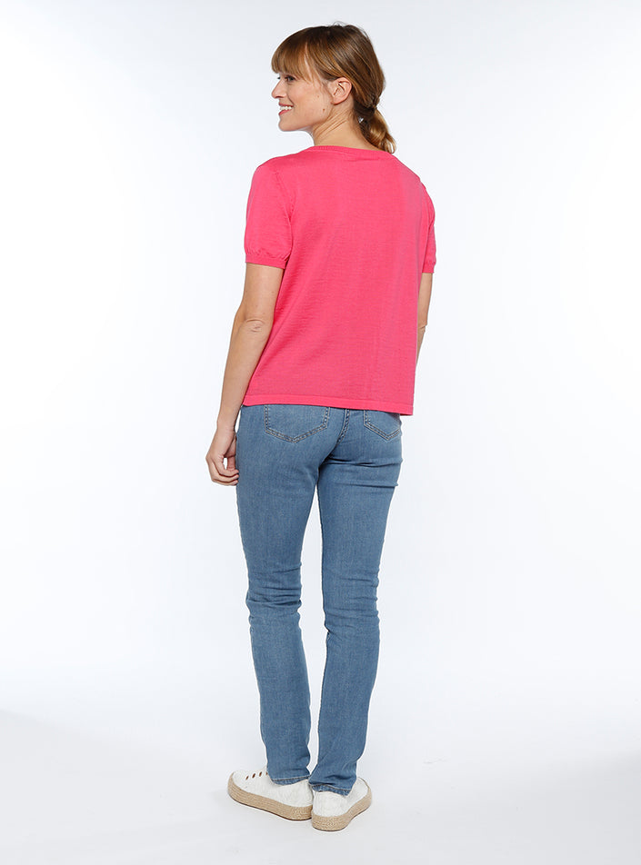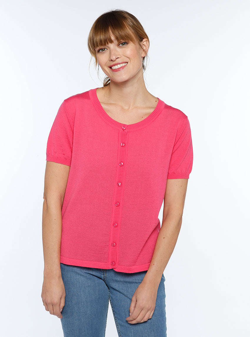 Ce cardigan femme manches courtes en laine mérinos fine séduit par sa légèreté et son confort naturel. Avec son encolure ronde et sa coupe féminine...