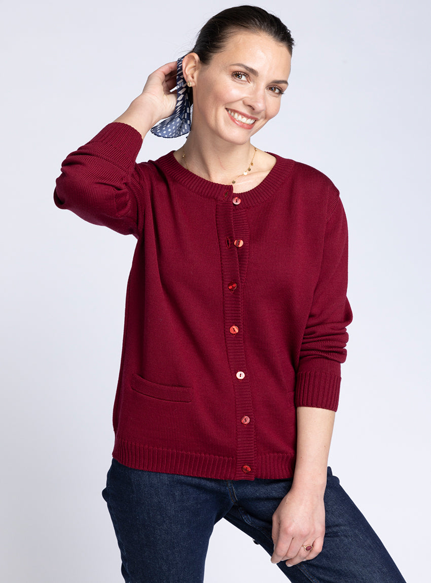 CARDIGAN FEMME EN LAINE JERSEY ÉPAIS ROUGE MEDOC