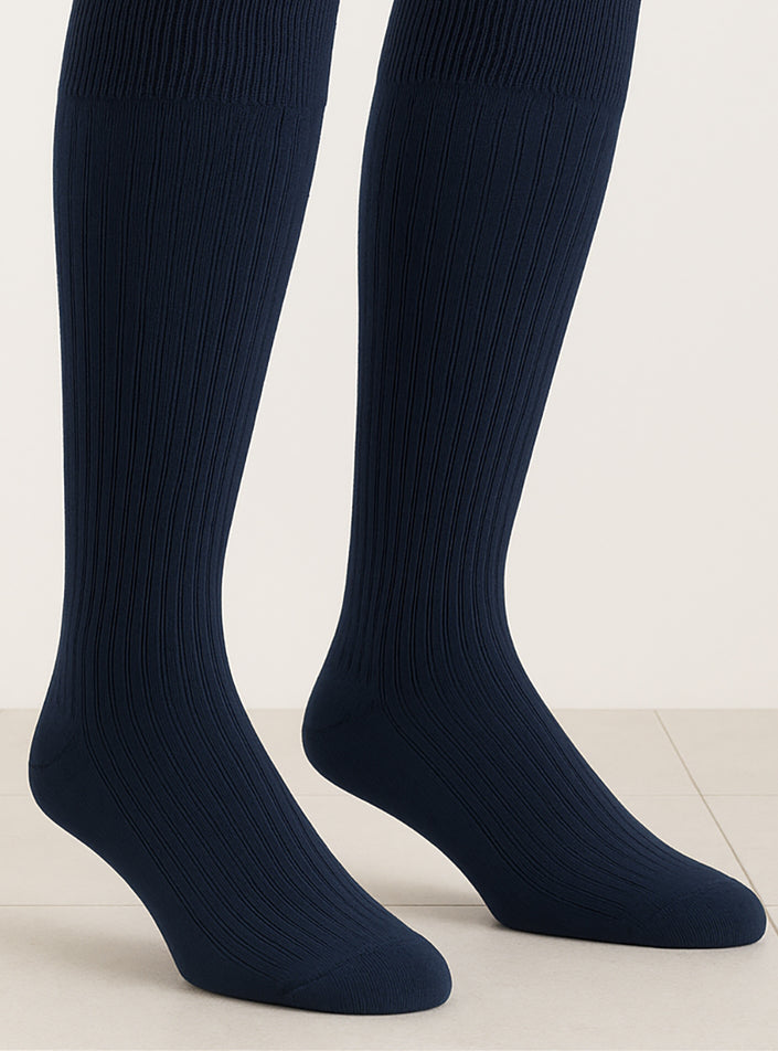 Découvrez le confort et la technicité des chaussettes hautes énergétiques bleu marine, fabriquées en France par une entreprise labellisée Entrepris...