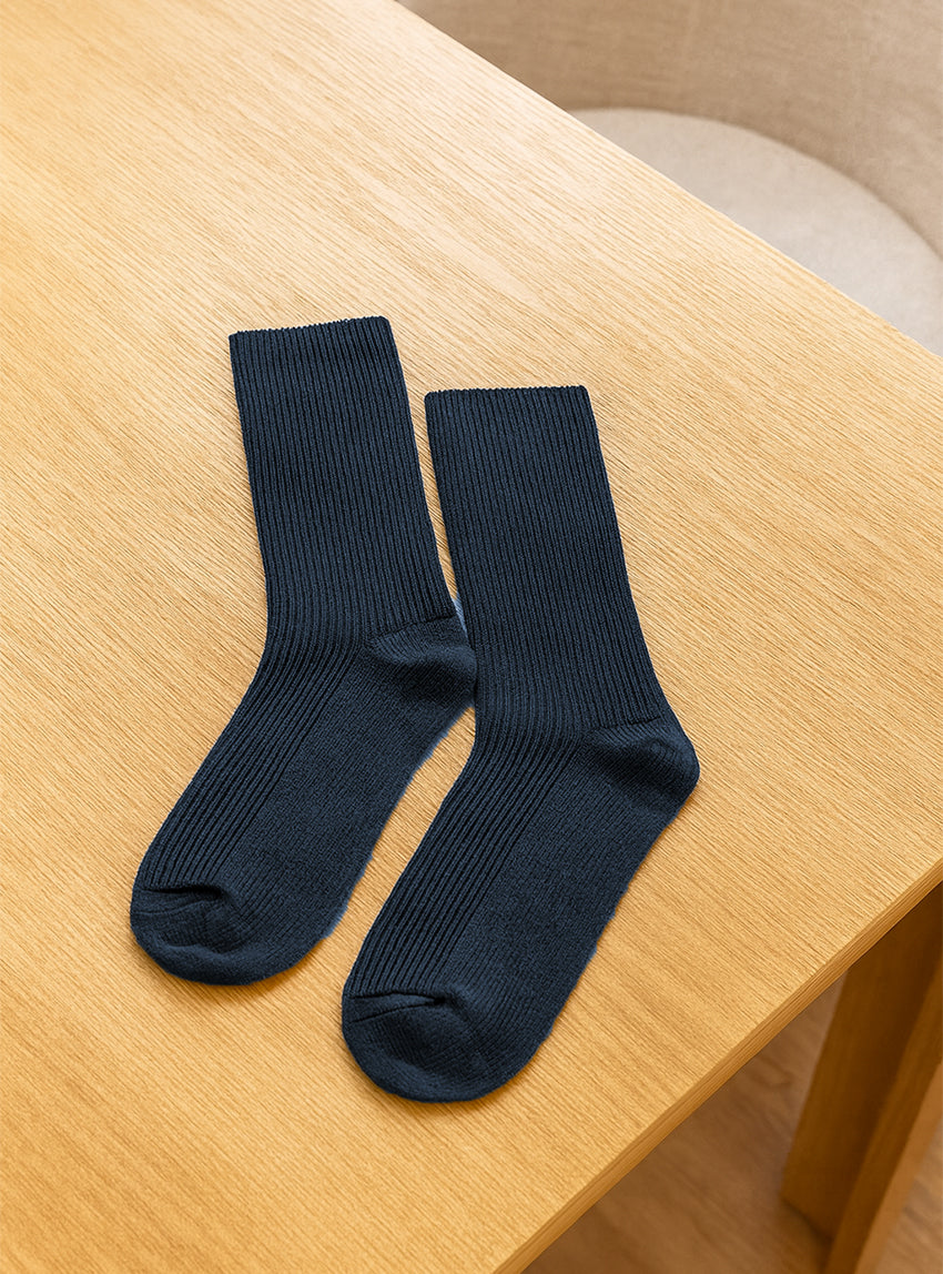 Découvrez le confort ultime avec ces chaussettes hautes mixtes en laine bleu marine, fabriquées en France par une entreprise labellisée Entreprise ...
