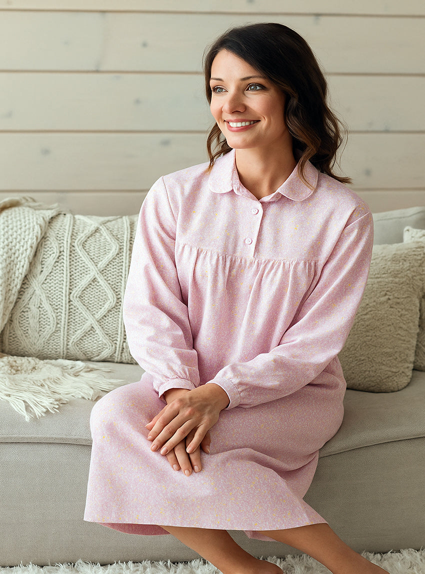 Le coton légèrement gratté de cette chemise de nuit procure une sensation de chaleur enveloppante sans étouffer. Sa texture moelleuse et respirante garantit un confort optimal tout au long de la nuit.