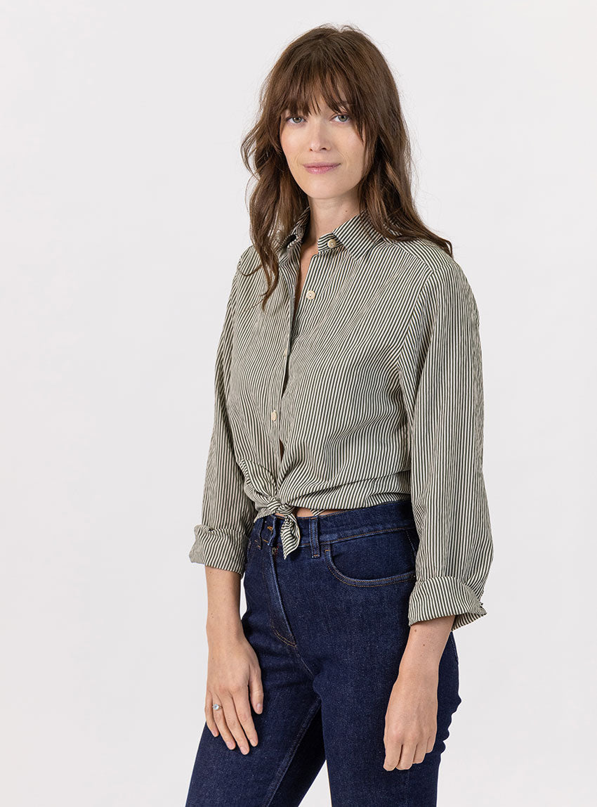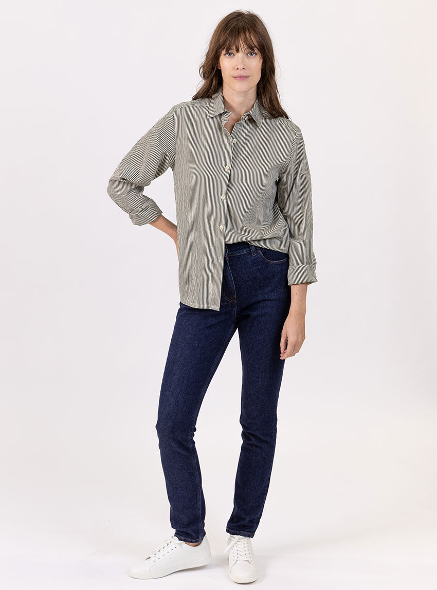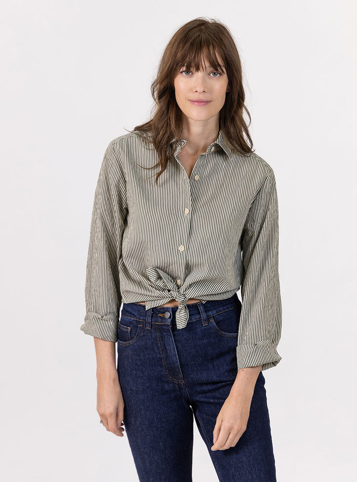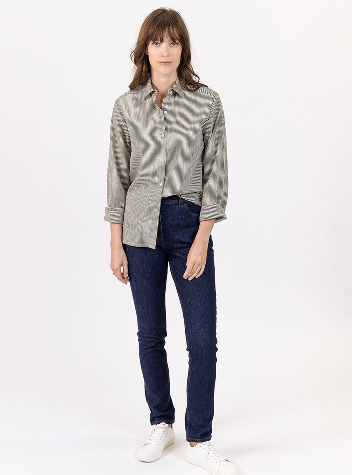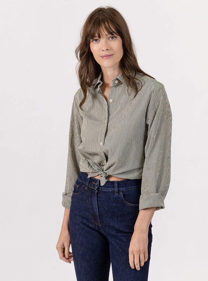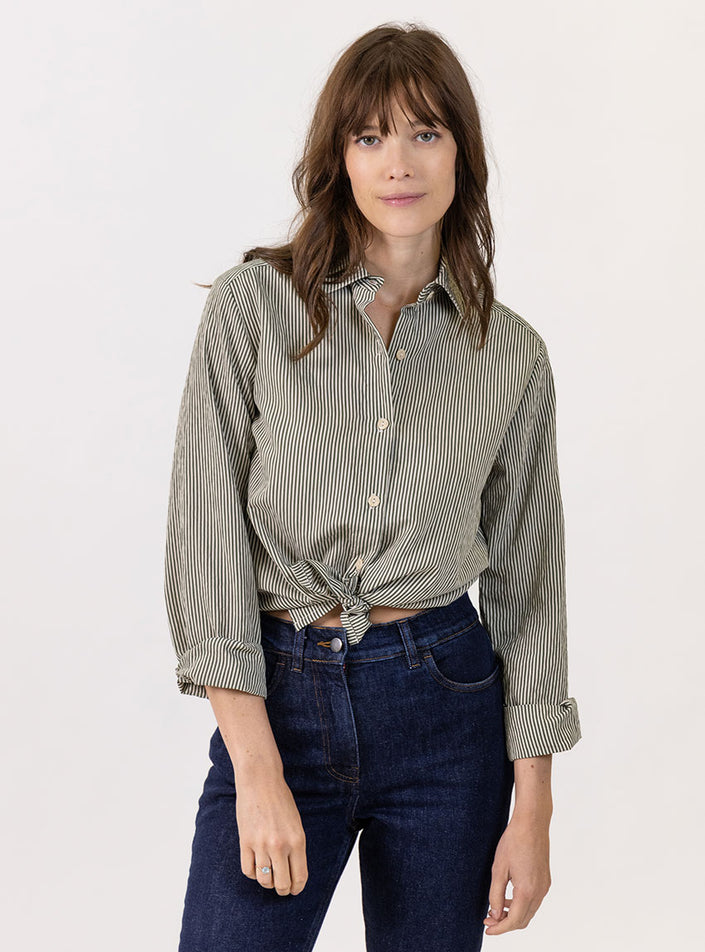 Adoptez un style à la fois chic et décontracté avec notre chemise rayée vert bronze, fabriquée avec soin en France, en Nouvelle-Aquitaine. Sa coupe...