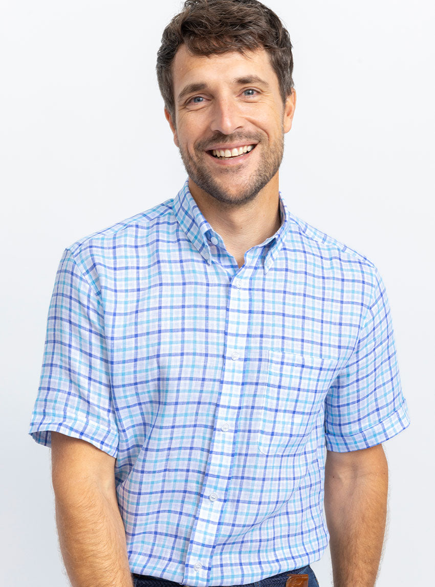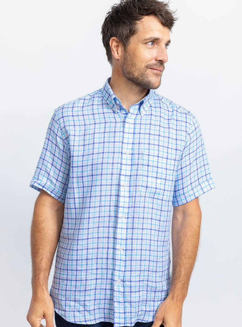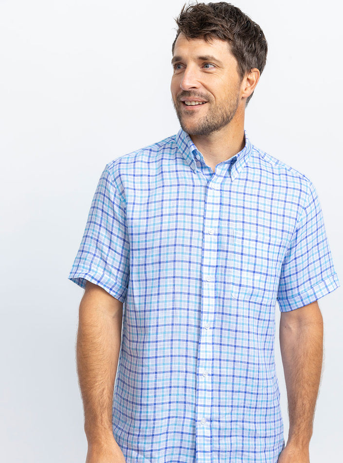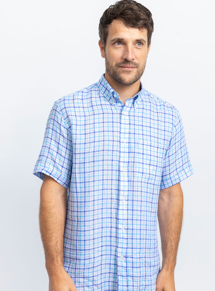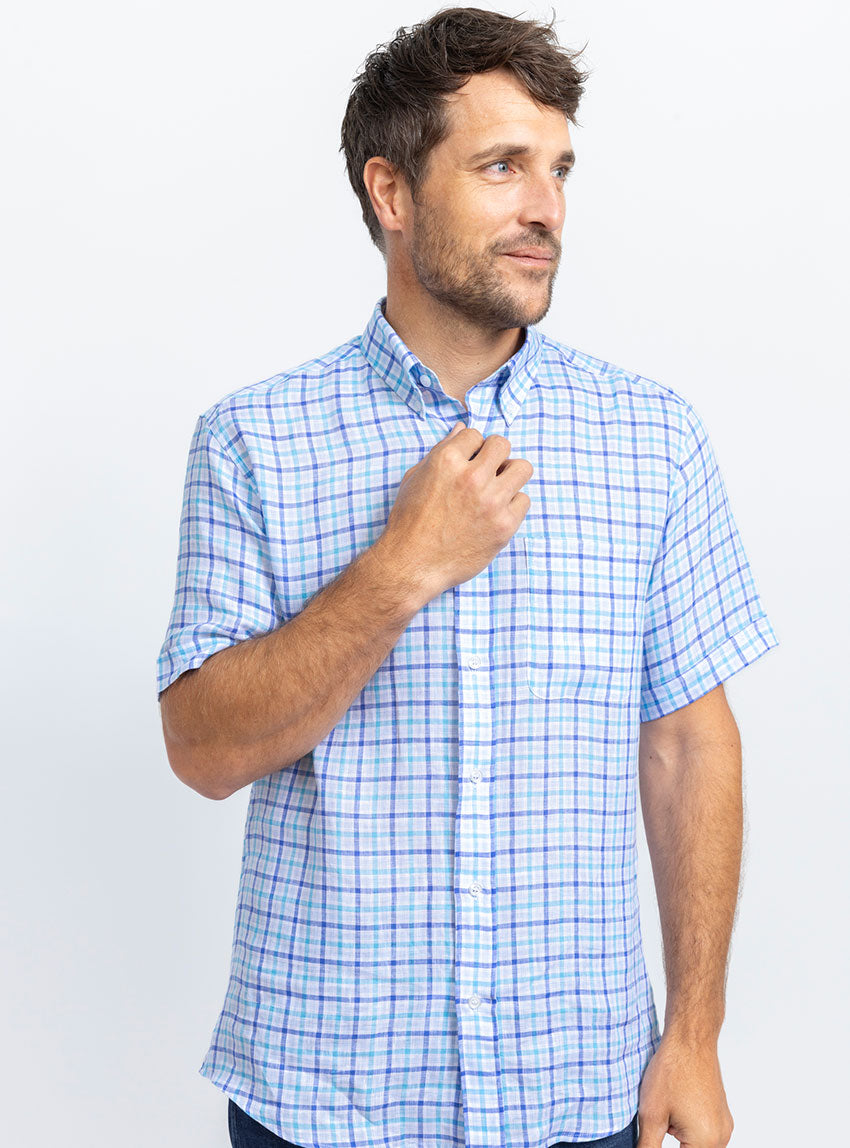 Alliant confort et style, cette chemise homme en lin à carreaux bleus est la pièce idéale pour un look estival élégant et décontracté. Sa coupe dro...